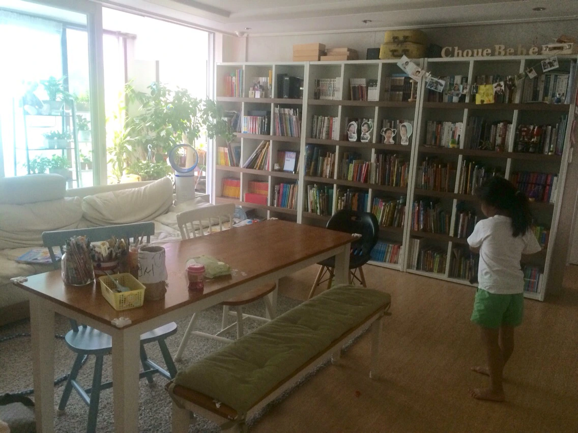 우리집은 몇년에 걸친 '거실을 서재로 프로젝트' 를 통해 거실에 대형 책상과 책장으로 꾸며 우리 가족 모두 책을 많이 읽는 습관을 드릴 수 있도록 노력하고있다.