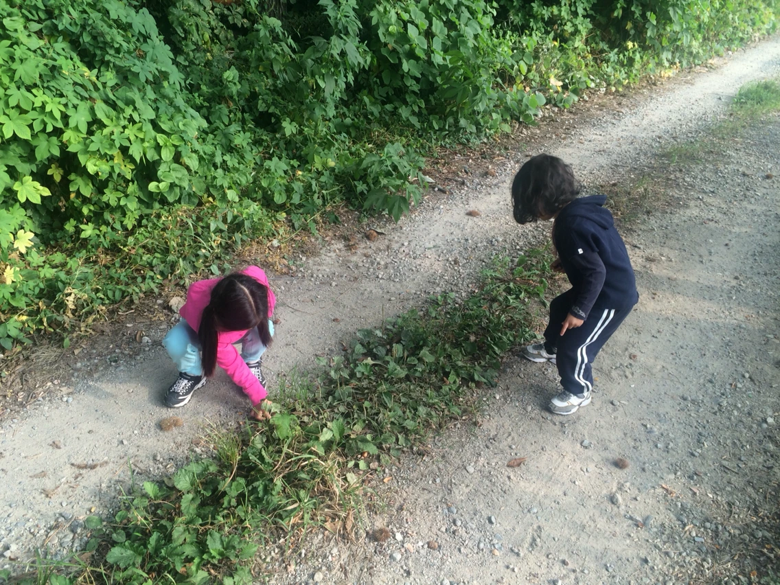 TV가 없어지고도 한동안은 TV방으로 달려갔다. 하지만 어떻게해도 TV가 안나오는걸 알게되자 더이상 TV를 볼 생각을 하지 않고 엄마 아빠를 괴롭히기 시작한다 빨리 일어나 놀아달라는 것이다. 그래서 우리가족은 주말이면 일찍 일어나 동네를 산책한다. 아파트 옆에 있는 뒷동산과 공원까지 연결되어 있는 산책로를 함께 걸어가며 밤도 줍고 도토리도 주우며 산책을 한다. 조금 걷다보면 아이들이 힘들다고 해서 엎어주기도하고 목마를 태워주면서 자연스럽게 스킨쉽이 많아진다.