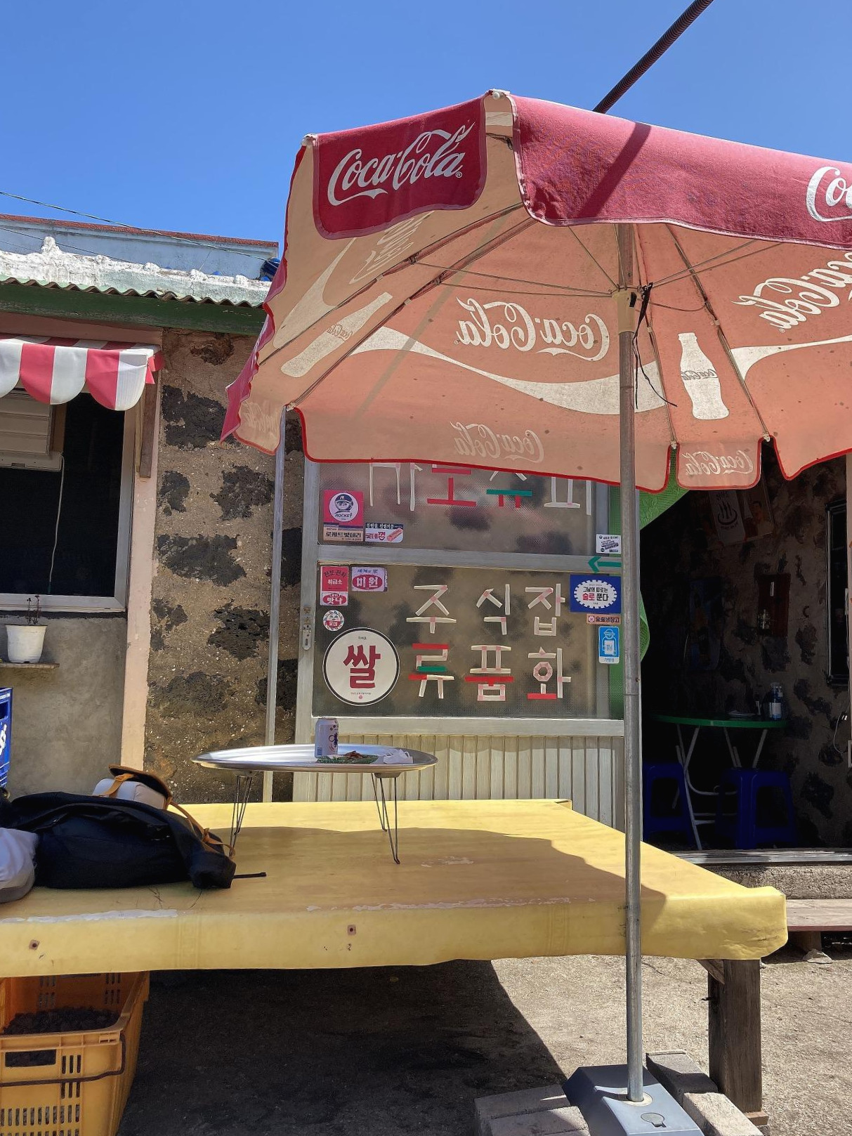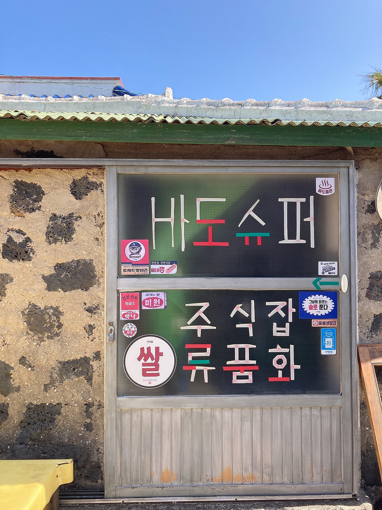 오픈 시간에 딱 맞춰 도착했지만 여기는 자유로운 제주였던가. 마당에 놓인 삼각대를 가지고 20분 정도 신나게 셀카를 찍고 나서야 사장님 부부가 나타났다. 늦어서 미안하다며 쥐포를 맛있게 구워 주신 후 필요한 게 있으면 가게에서 편하게 꺼내 먹으라고 하시고 숙소 오픈 준비를 하셨다. 진짜 '나는 나 너는 너'. 동네 언니 오빠네 집에 놀러 와서 혼자 노는 애 같았다. 오히려 나 신경 안 쓰고 할 일 하시는 게 나 혼자 놀기에 더 편하긴 했다.