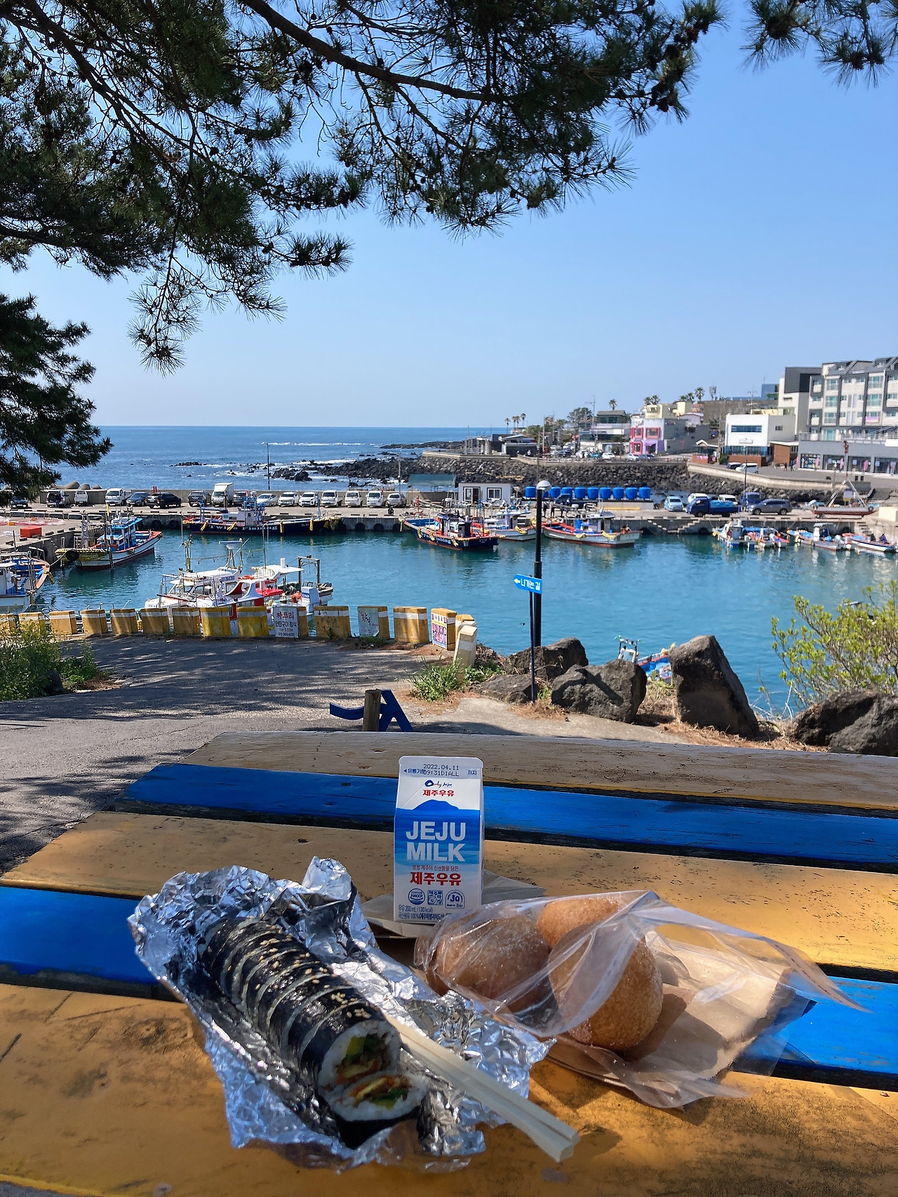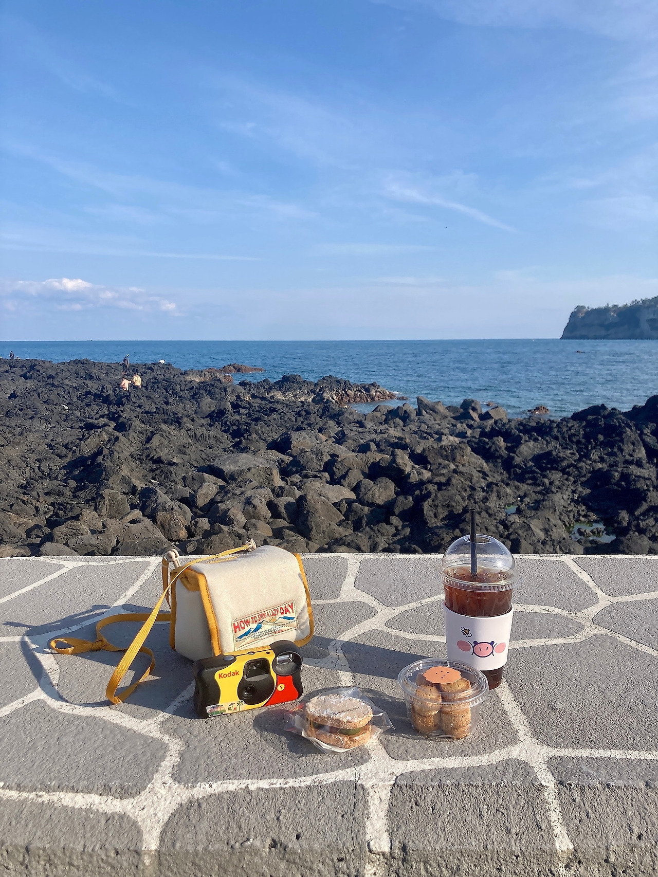 남부에서 매일 산책하다 루틴이 생겼다. 1. 계획 없이 산책하다 근처에 있는 빵집, 카페, 밥집에 들어간다. 2. 빵집에서 빵을 사고 나오고, 빵과 같이 마실 커피를 사러 근처 카페에 가고, (그 카페에서는 다른 곳에서 산 빵을 먹을 수 없으니) 3. 각각의 먹을 것을 들고 법환포구 쪽으로 향한다.