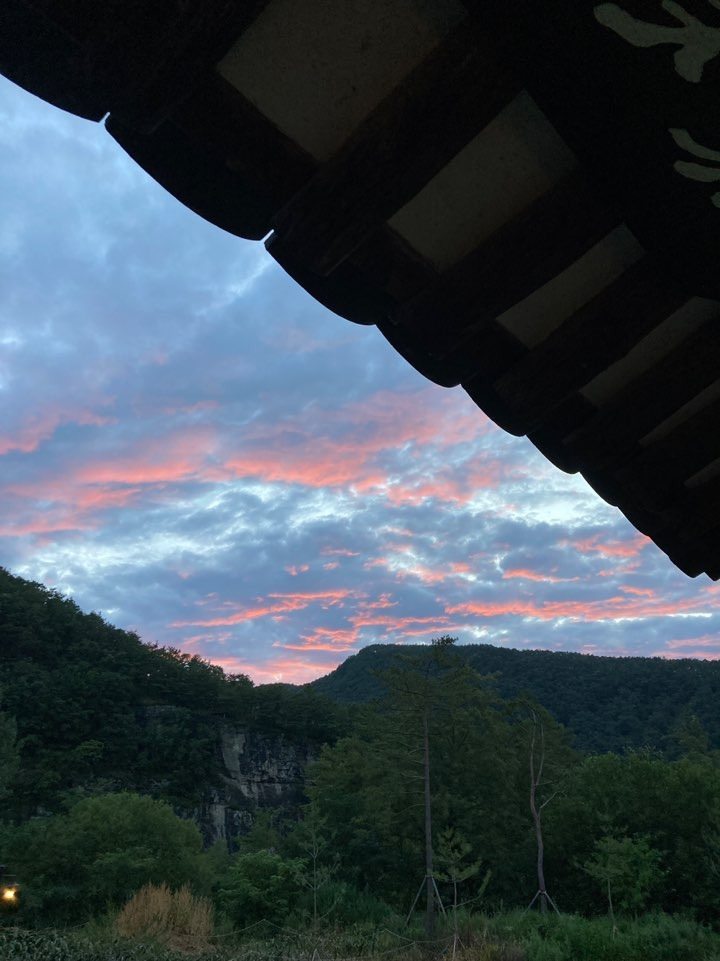 농암종택은 낙동강이 흐르는 청량산 자락에 위치한 곳. 배산임수 그대로의 600여 년 된 종택이다. 대청마루에 앉아 시시각각 변하는 구름모양과 감탄을 잇는 하늘색을 바라보는 것만으로도 풍족한 곳. '내 삶도 계속 이렇게 흘러가겠구나', '유한한 인생에서 찰나를 잘 살아내야겠다'는 생각을 하게 되는 곳. 안내글에 쓰여 있던 글처럼 사색과 유유자적을 위한 최상의 공간이다.