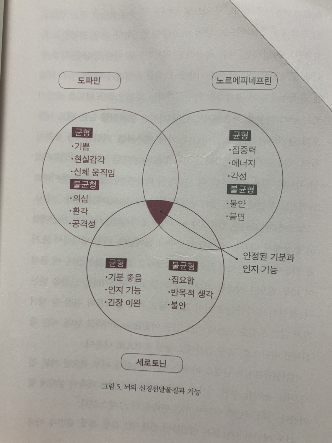 "신경전달물질은 균형을 이루는 것이 중요하다. 너무 적으며 기분, 인지 기능, 움직임, 수면, 식사가 제대로 이루어지지 않고 의욕이 심하게 떨어진다. 특히 예민한 이들이 이런 변화를 더 크게 느낀다." (p.38)