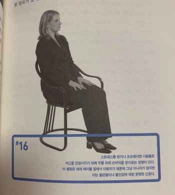 "스트레스를 받거나 초조해지면 사람들은 자신을 진정시키기 위해 무릎 위에 손바닥을 문지르는 경향이 있다. 이 행동은 대게 테이블 밑에서 이뤄지기 때문에 그냥 지나치기 쉽지만 이는 불편함이나 불안감에 대한 분명한 신호이다"