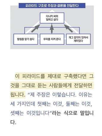 이렇게 말하는 것이 훨씬 명확하다. 대부분 면접관들도 회사에서 보고할 때 이런 방식에 익숙해져 있기 때문에 좋아한다. 사람은 익숙하면 좋아하게 된다고 한다. 이유를 설명할 때 자신의 경험에 대한 구체적인 예시를 함께 포함하면 시각적인 이미지도 함께 불러일으키기 때문에 좋다.