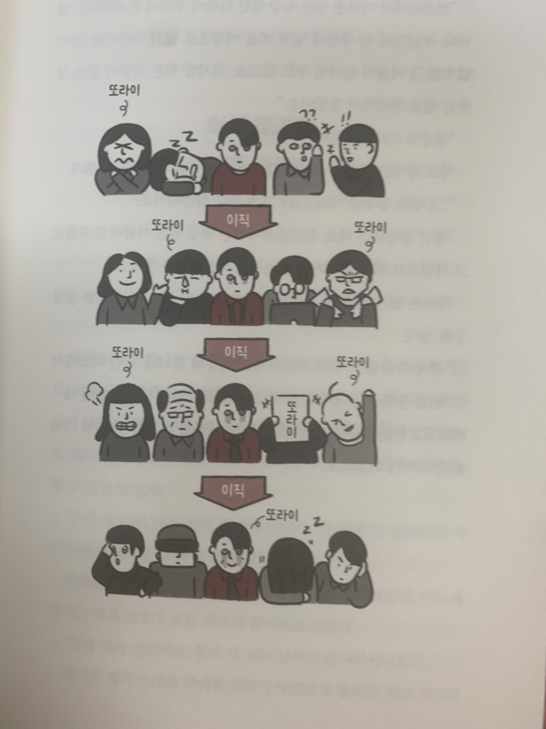 제목만 보고는 '이렇게 해라'라는 일반적인 자기계발서를 생각하기 쉽지만, 내용은 <<영어천재가 된 홍대리>>처럼 스토리텔링 방식이다. 주인공인 희석과 멘토인 샤크 강사의 이야기를 따라가다 보면 저자가 전달하려는 메시지를 거부감 없이 받아들일 수 있다. 중간중간 삽입된 직장인의 마음을 그대로 옮겨 놓은 조자까의 일러스트는 더더욱 감정 이입과 몰입감을 선사한다.