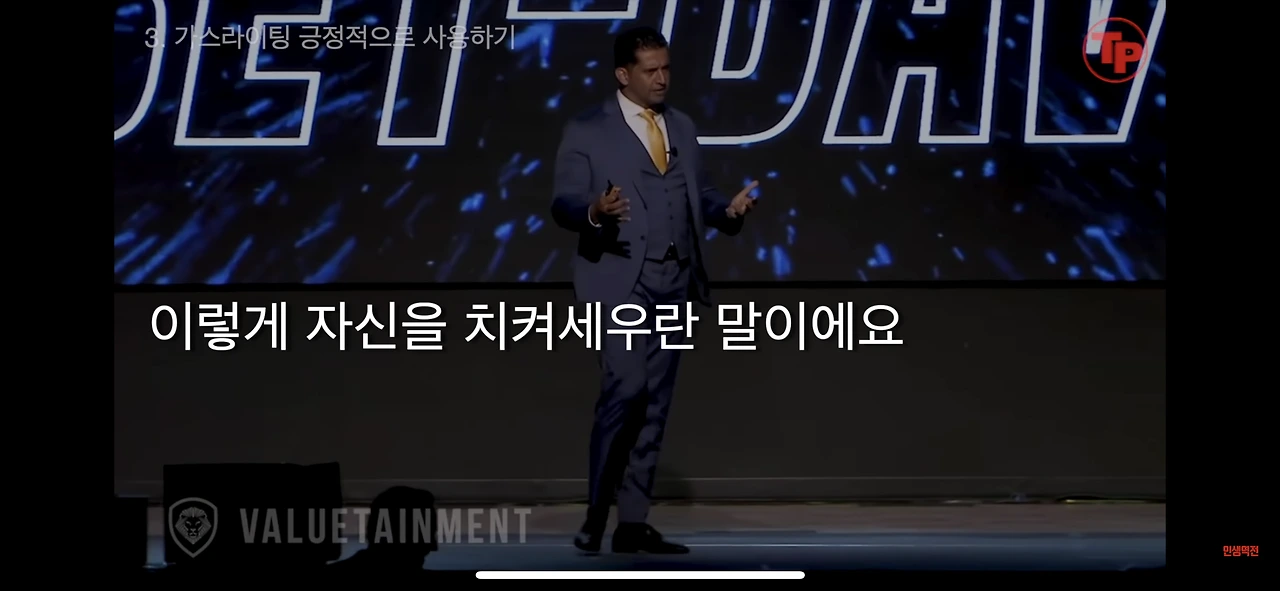 만일 지금 능력에 비해 기회가 없거나 스스로 능력이 없다고 생각한다면 Petrick Bet David 말처럼 자기 자신을 가스 라이팅 하는 것도 좋을 거라 생각한다.