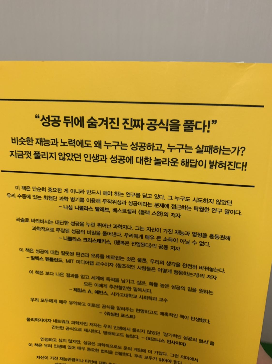 정말 열심히 노력하면 성공한다고 믿고 싶지만, 그렇지 않다. 인맥도 중요하고, 실력 외에 갖추어야 할 것도 많다. 노력해도 안되는 현실 때문에 그냥 "이번생은 망했다"라고 생각하고 말까? 아님 그럼에도 계속 지원서를 내고, 열심히 일하면 언젠간 좋은 날이 온다고 믿어야 할까? 노오력해도 안되는데, 소확행이나 하면서 살까? 정말 성공은 운칠기삼, 즉 운이 70% 인가? 정말 예측하지 못하는 걸까? 재능과 노력만 있다면 성공할 것이라 생각했는데 왜 원하는 결과를 얻을 수 없는 걸까?