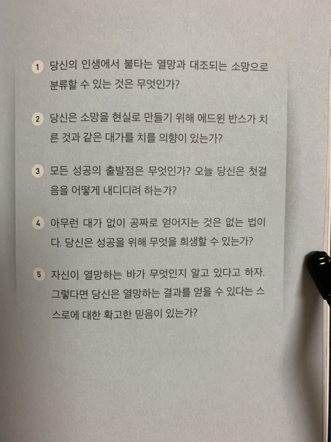 1. 목표를 달성하겠다는 불타는 열망이 뒷받침된 명확한 목표 의식을 갖는다.