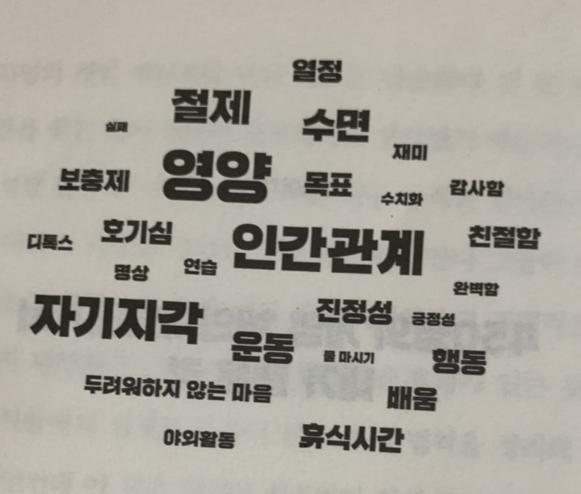 "자기규정이 달라지면 우리의 행동은 새로운 정체성을 뒷받침하기 위해 자동적으로 바뀌게 된다. 변화를 원한다면 자기 자신과 자기가 하는 일을 다르게 규정해야 한다(하루 1%, p.30)". 상위 1%가 되기 위해 일단 내가 어떤 사람인지 알고 스스로를 긍정적으로 평가해야 한다. 사람들이 나를 어떻게 봐주길 바라는지 생각해보고 그 단어로 나를 규정해보자.