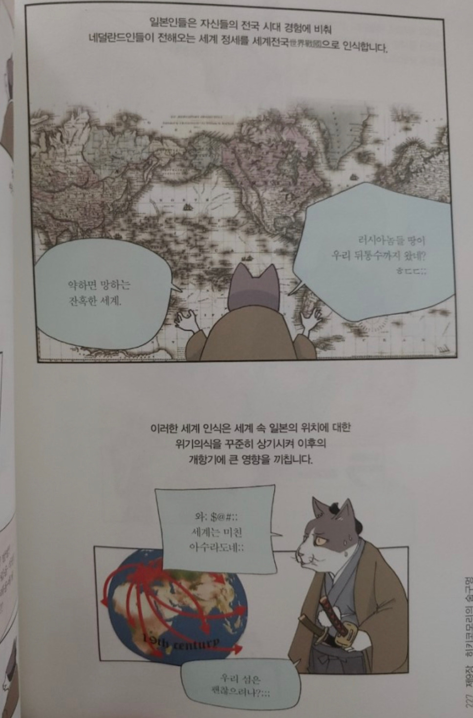 성장판 독서모임 서평단에서 이번에 추천한 책은 <<본격 한중일 세계사>>이다. 제목만 보고 역사책이려니 했는데, 만화 역사책이었다. 접했던 만화 역사책 중 <<먼 나라 이웃나라>>가 가장 유명하다. 읽은 지 오래되었지만 재미있었던 기억은 아직 생생하다. 최근에는 <<이현세 만화 한국사>> 전집과 <<조선왕조 실톡>>이란 책을 구매했다. <<조선왕조 실톡>>은 어느 날 갑자기 모르는 사람이 카톡으로 친구 추가했는데, 알고 보니 조선 왕 들이었다는 것이다. 책을 읽는 것이 마치 SNS로 친구가 얘기해주는 것 같다.