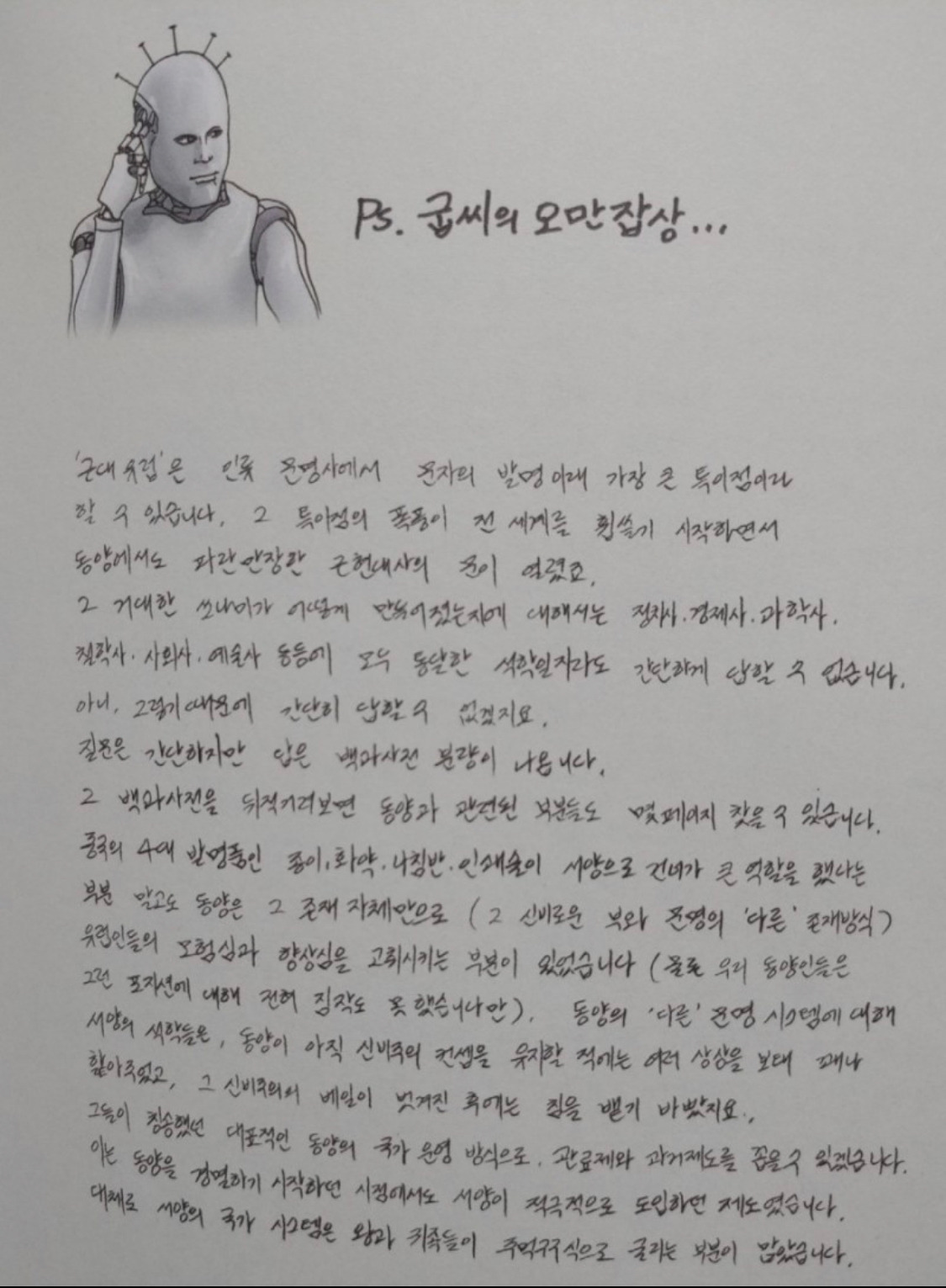 <<본격 한중일 세계사>> (저자 굽시니스트, 출판 위즈덤하우스, 발매 2019.04.15) 책의 작가는 굽시시니트스트(김선웅)이다. 81년생의 (내가 보기엔) 젊은 이 작가는 성균관대 역사교육학과에서 석사를 받았다. 굽시니스트라는 필명으로 2009년부터 <<시사인>>에서 <본격 시사인 만화>를 연재 중이다. 작가는 책 서문에 이렇게 먼저 질문을 던진다.