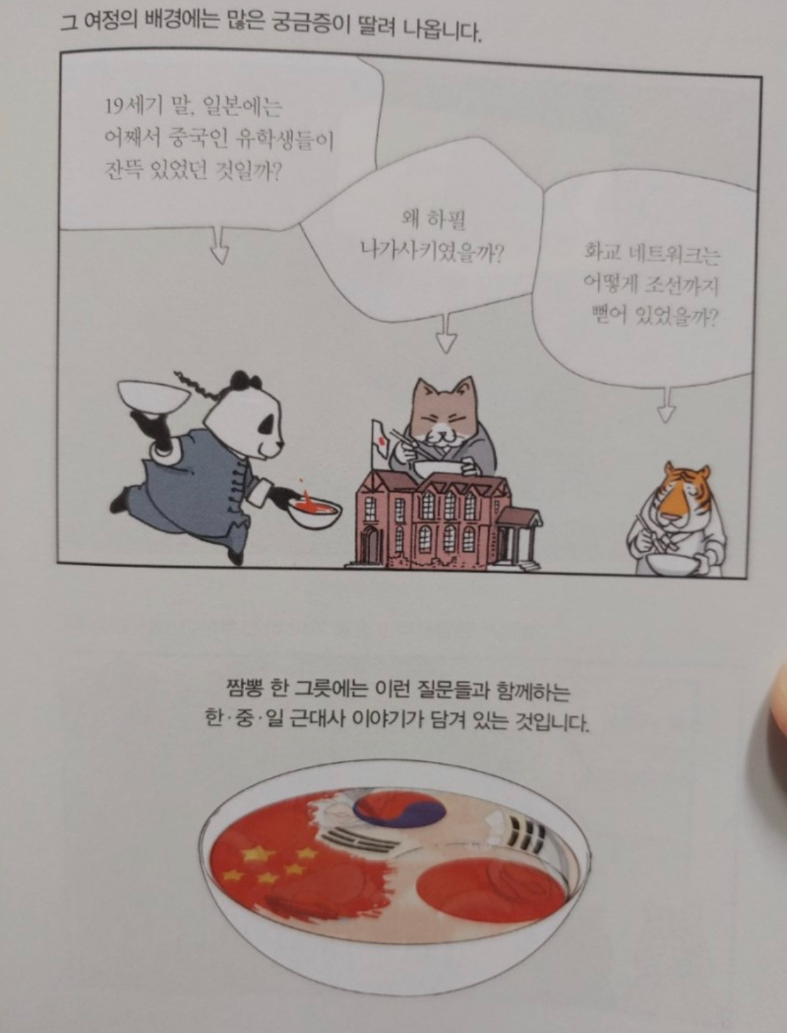 위 만화 컷에서 알 수 있듯이 짬뽕 한 그릇에도 한. 중. 일 근대사의 이야기가 녹아있다.