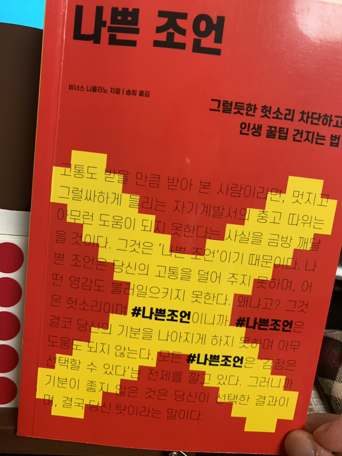 이 말은 <<나쁜 조언>> (비너스 니콜리노 저, 솝희 옮김, 샘터)이란 책을 떠올리게 했다.