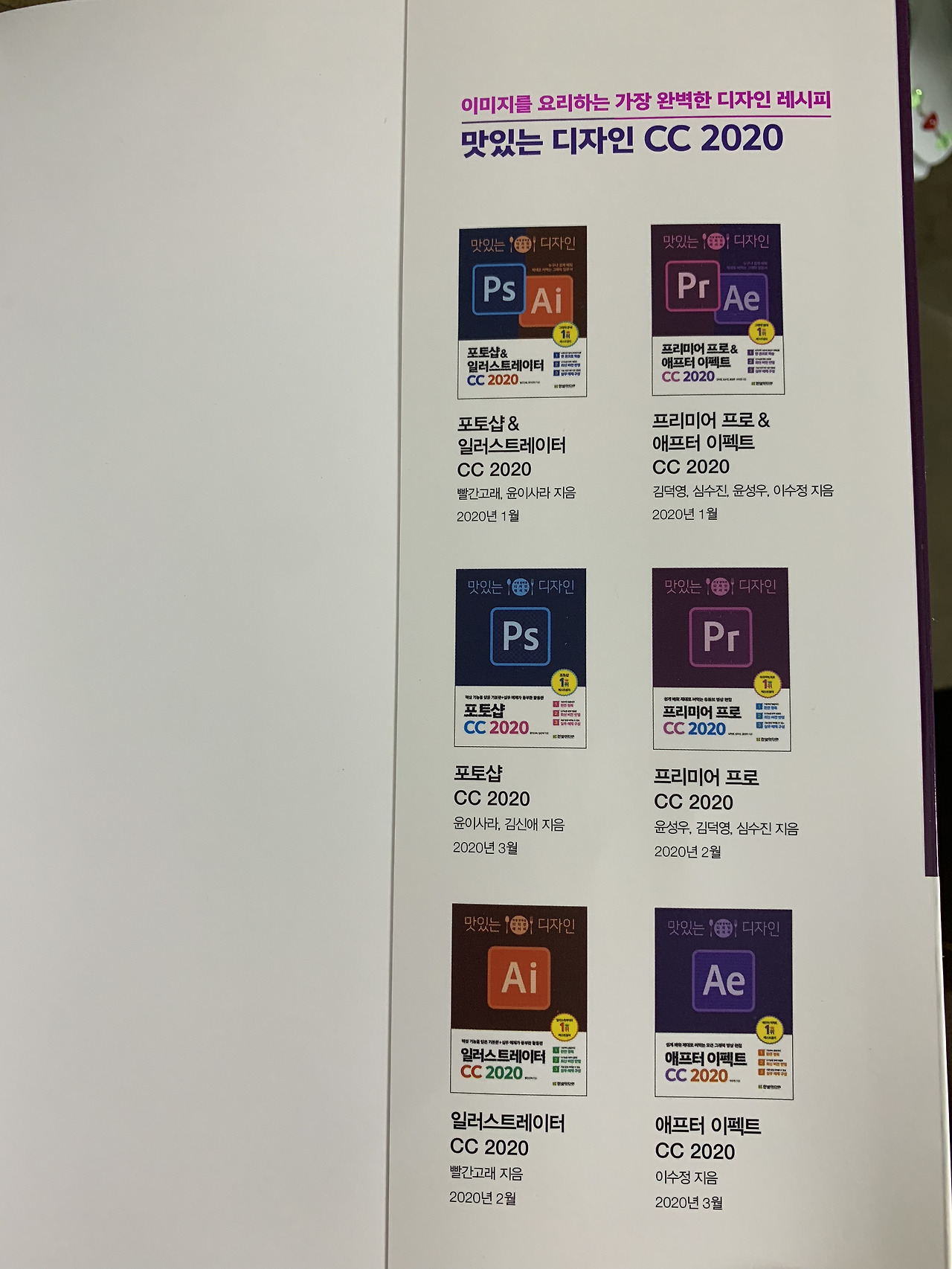 맛있는 디자인 시리즈를 내고 있는 한빛미디어. 디자인에 대해 제대로 알려줄 각오를 보여준다. 포토샵, 일러스트레이터, 프리미어 프로, 애프터 이펙트 등 다양한 디자인 도구들이 있다. 예전엔 이런 도구들은 전문가들만 쓰는 도구, 디자인을 전공으로만 하는 사람들의 도구로 생각했다. 소프트웨어도 비쌌고, 도구도 사용하기 복잡했다.