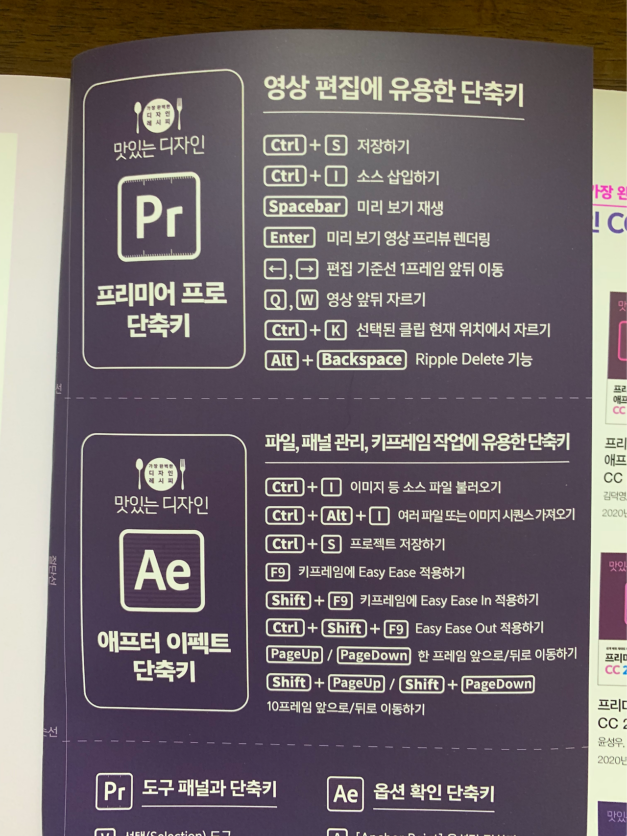 툴을 잘 쓰는 사람인지 아닌지는 단축키를 얼마나 외우고 있는가를 보면 알 수 있다. 단축키를 잘 쓰면 확실히 작업 생산성도 올라간다. 영상 편집 자체가 손이 많이 가고 시간이 많이 가는데, 조금이나마 손목에 무리가 덜 가려면 단축키를 써야 한다. 가능한 단축키를 써서 독자가 빠르게 툴을 익히고 잘 쓸 수 있게 중간중간 해당 기능을 불러오는 단축키도 함께 설명하고 책 뒤에 오려서 책상에 둘 수 있는 메모를 제공한다.