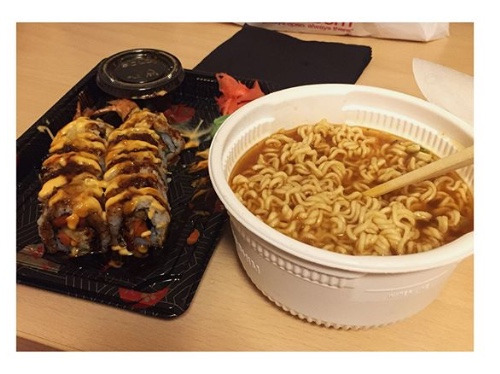 승선 한달차 기념으로 오늘 하루 고생한 나에게 세상 귀하디 귀한 상을 내렸다. 크루즈 5층에 있는 스시 레스토랑에서 테이크 아웃해온 꼬마김밥 만큼 얇은 스시롤 그리고 컵라면. 한국돈 만원.ㅋ