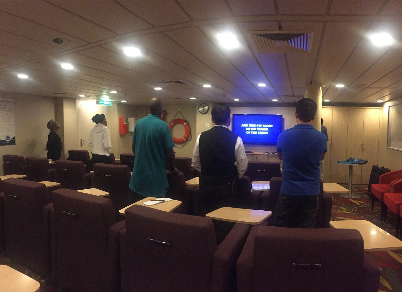 매일 혼자 큐티를 하기도 하지만, 다행이 이 곳에서 일주일에 한번씩 성경공부 모임도 있다. 이 모임도 나는 스케줄이 워낙에 뒤죽박죽이라 못갈때가 더 많다. 흡연실과 승무원 클럽 바로 옆에 위치해 있는 작은 안전 교육 강의실을 밤 11시에 빌려서 성경공부 모임 장소로 쓰기 때문에 처음에는 정말 쿵짝거리게 시끄럽고 담배 연기와 냄새로 뿌옇게 가득한 지하의 공간이 정말 열악하고 가난해 보였었다. 하지만 이 곳에서 시간을 보낼수록, 이 곳에 모이는 사람들의 마음만큼은 정말 강하고 부유하고 사랑으로 가득 차있는 진정한 항해자들이란걸 깨닫고 느끼고 있다.