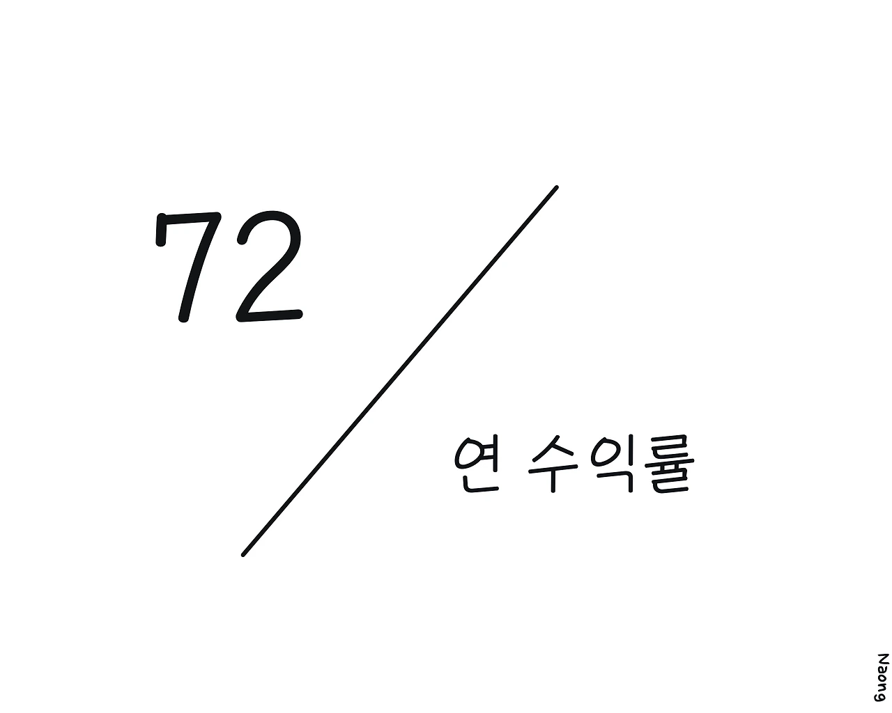 ‘복리의 72법칙’라는 것이 있다. 복리 계산을 쉽게 하는 방법인데, 72를 연 수익률로 나누면 원금을 2배로 만드는 데 필요한 투자기간이 나온다. 가령 연 8% 수익률을 9년 동안 지속하면 원금이 두 배가 된다. 마찬가지로 72를 투자기간으로 나누면, 원금을 2배로 만드는 데 필요한 연 수익률이 나온다.