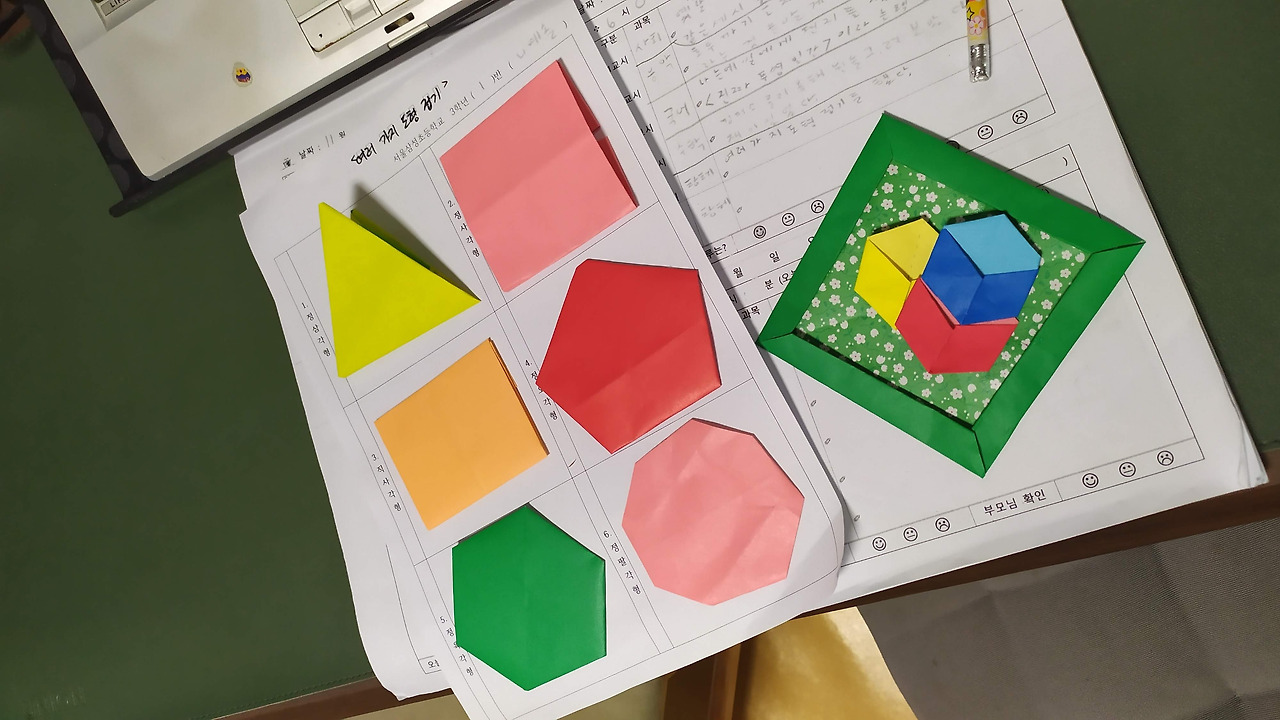 얼마 전 솔이 창체(창의적 체험학습) 온라인 수업 중, 종이접기를 따라 하는데 도저히 못 하겠다고 앓는 소리를 내고 울상인 거다. 오각형, 육각형 비슷한 모양으로 종이를 접는데 내가 보기엔 그리 어려운 단계가 아닌데도 한숨만 푹푹 내뱉기에 어쩔 수 없이 내가 도와주었다. 접은 과정을 거꾸로 펼쳐가며 시연을 보여주자 그제야 "아, 그런 거구나" 하며 표정이 밝아진다. 하지만 다음 색종이를 몇 번 접더니 지 맘대로 안되자 엉망으로 구겨버리고는 성질을 못 이겨 자리를 뜨고 만다. 형체를 알아볼 수 없이 팽개쳐진 색종이들만 안쓰럽다.