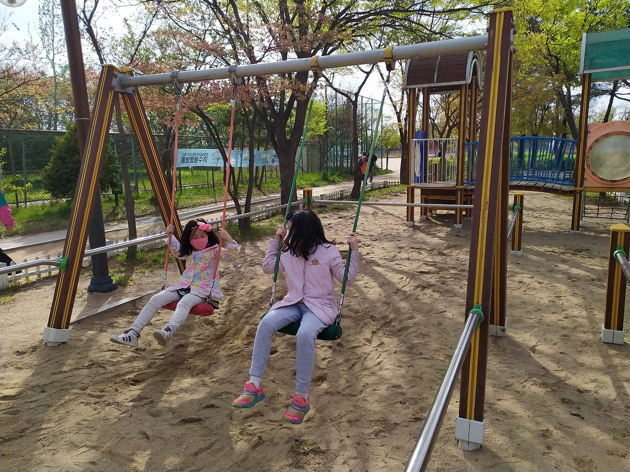 그네를 타는 아이들. 어떤 상황에서든 잘 웃고, 밝은 표정을 지을 수 있다는 건 코로나 시대를 버틸 수 있는 특별한 강점임에 틀림없다.