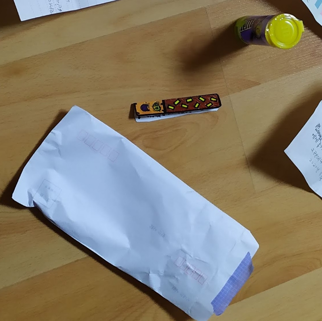 "안에 플라스틱 통도 들어있네. 편지도 한 장이 아닌데?"