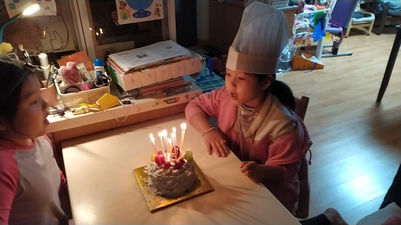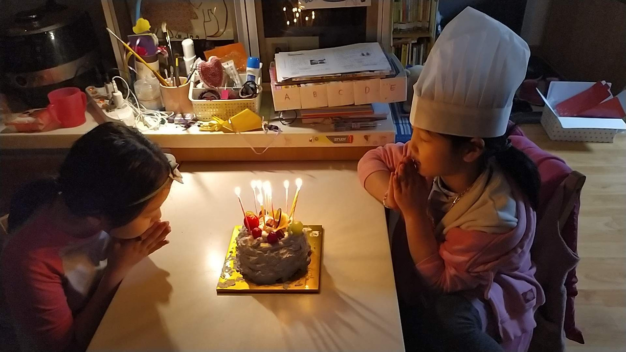 다 만들고 나서 화룡점정으로 촛불을 모두 꽂아 불을 밝히고 다 함께 소원을 빌어본다.