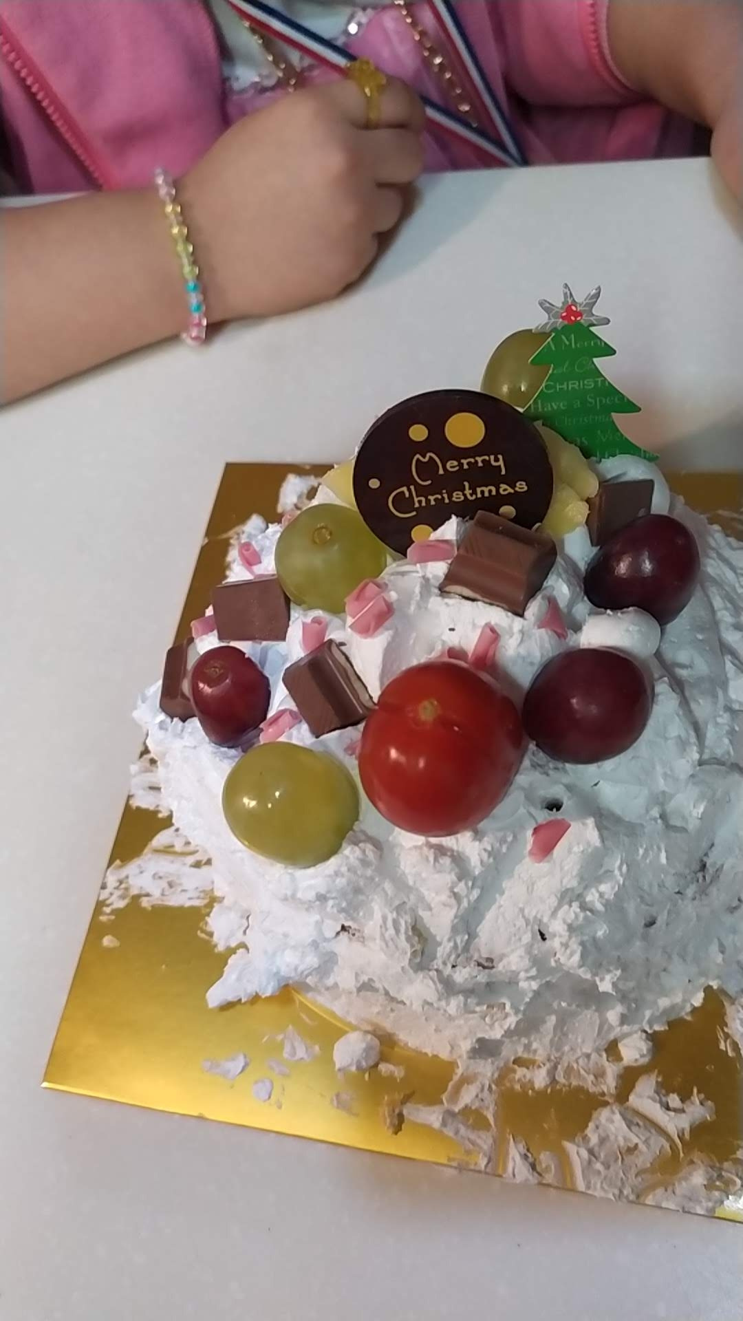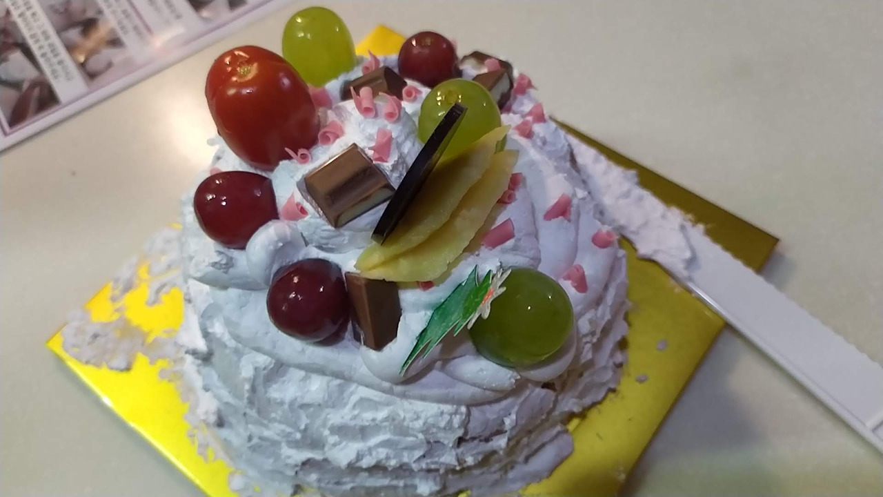 케잌 칼로 한 조각씩 잘라 가족들에게 배분하고, 나도 한 조각 입에 넣어본다.