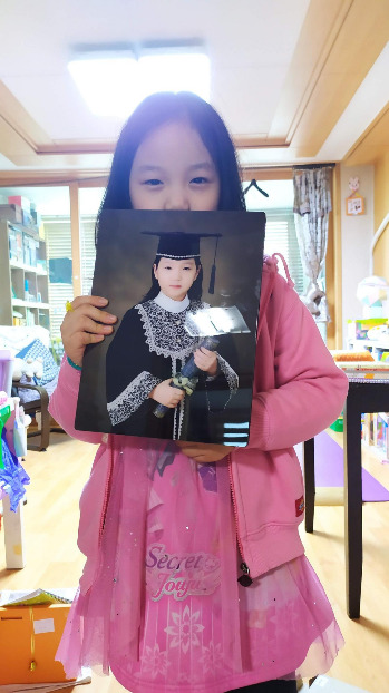 아이의 졸업복을 입은 사진이 담긴 액자도 마음에 쏙 든다. 가장 선명하고 잘 찍힌 사진을 고른 듯하다.