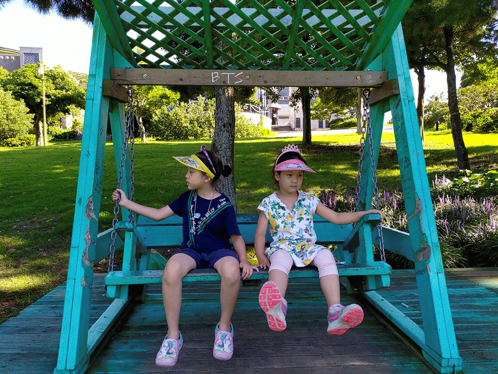 국립제주박물관 안쪽 깊이 들어가면 어린이 올레 체험관이 나타난다. 야트막한 언덕배기를 타고 내려가면 청록색으로 칠한 나무 그네(누군가 들보에 'BTS'를 새겨 놓았다)가 흔들대는데, 그쪽으로 다가가자 맴돌이가 양 날개와 얇은 배막을 부르르 떨기 시작했다.