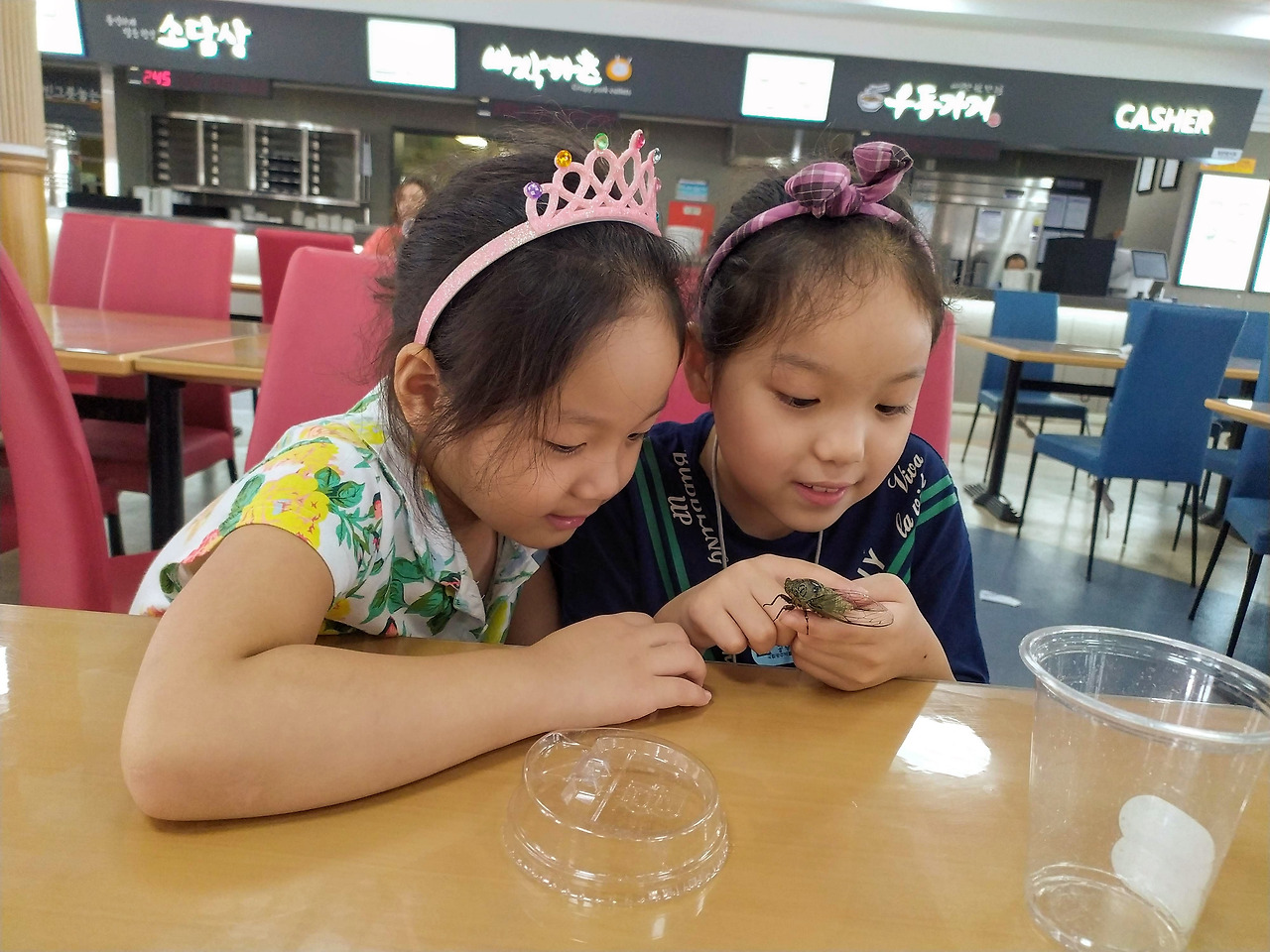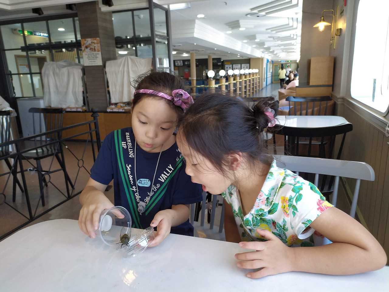 "얘들아, 이 안에 오락실도 있고, 꽤 넓은 식당에 편의점도 있더라. 아빠랑 구경 가보자."