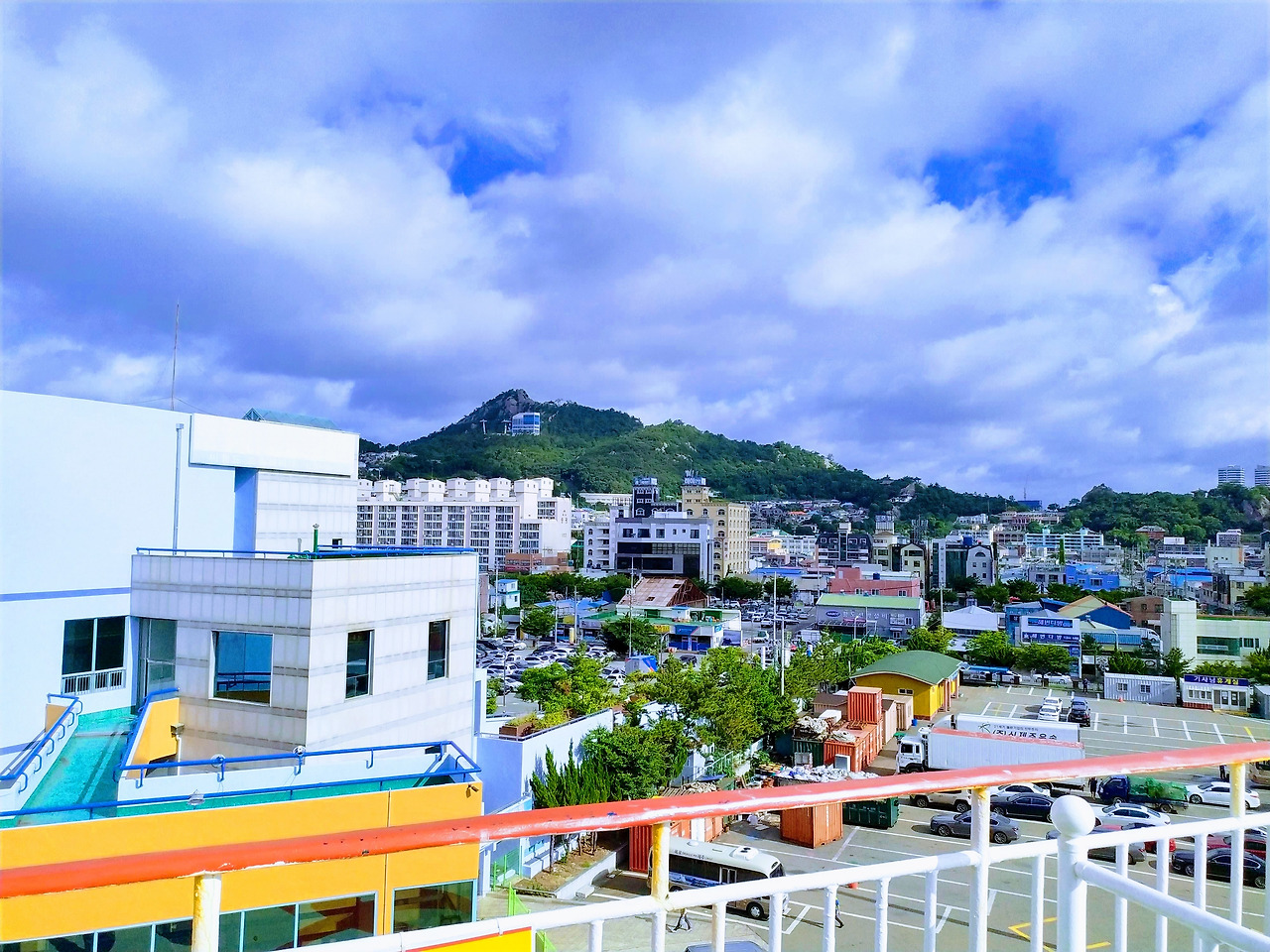 멀리 유달산을 뒤덮은 짙은 녹음은 배경으로 깔린 연회색 구름과 대비되어 푸르름을 더해간다.