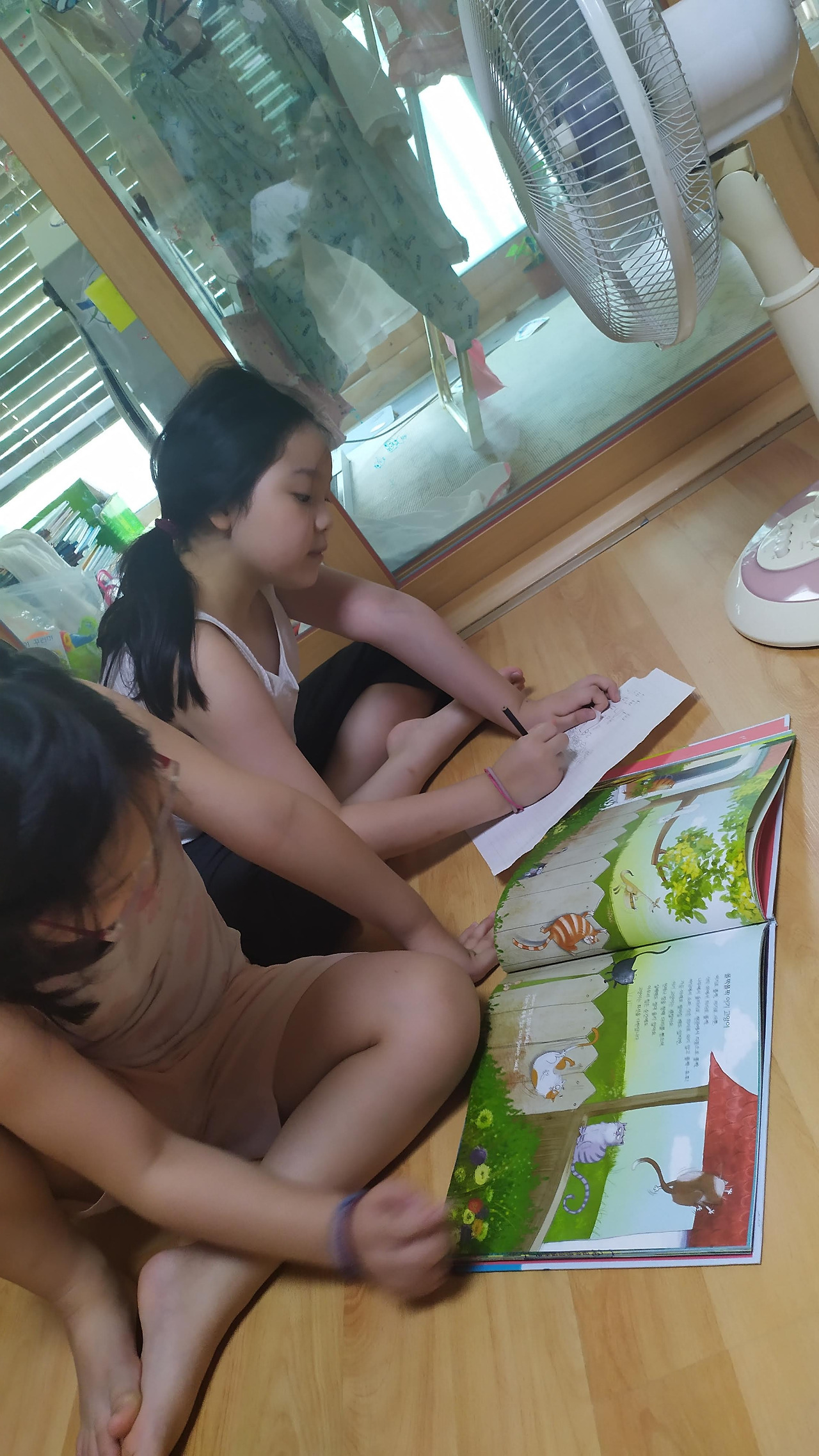 "자, 여기 '폴짝폴짝 아기 고양이'를 펼치면.. P, A, O 그리고.."