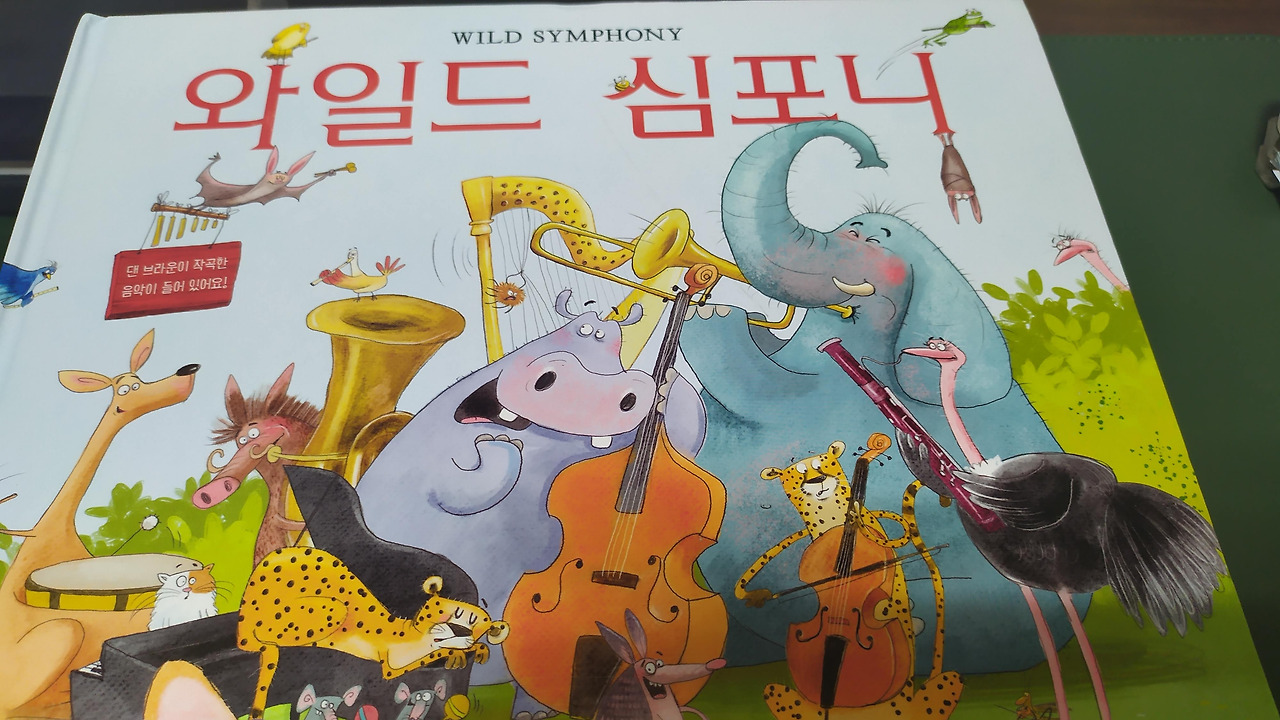 이미 알아차린 분들도 있겠지만, <다빈치 코드>로 잘 알려진 '댄 브라운' 이 아기자기한 그림책으로 돌아왔습니다. 야생 동물들이 다양한 악기를 합주한다는 내용의 <와일드 심포니, Wild Symphony> 란 책이네요.