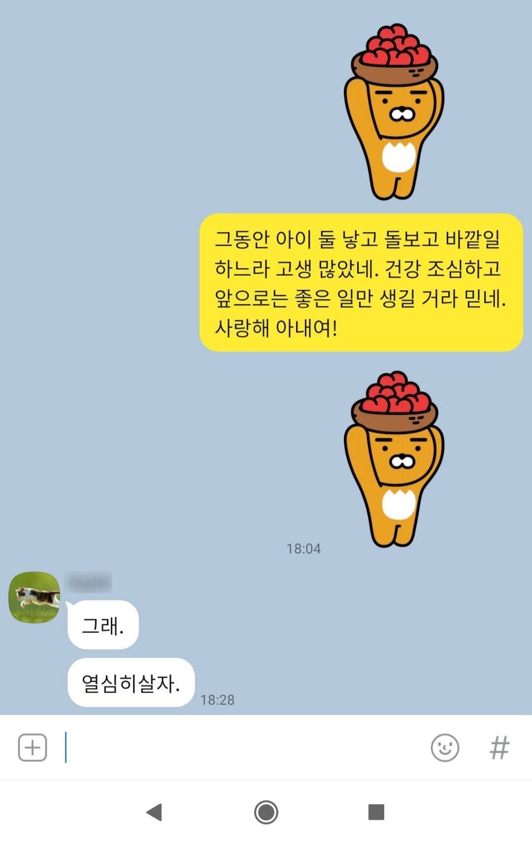 아내에게는 카톡으로 메시지를 남겨 봅니다. 아이들에게 사랑한다고 말하는 것보다 난이도가 급상승합니다.