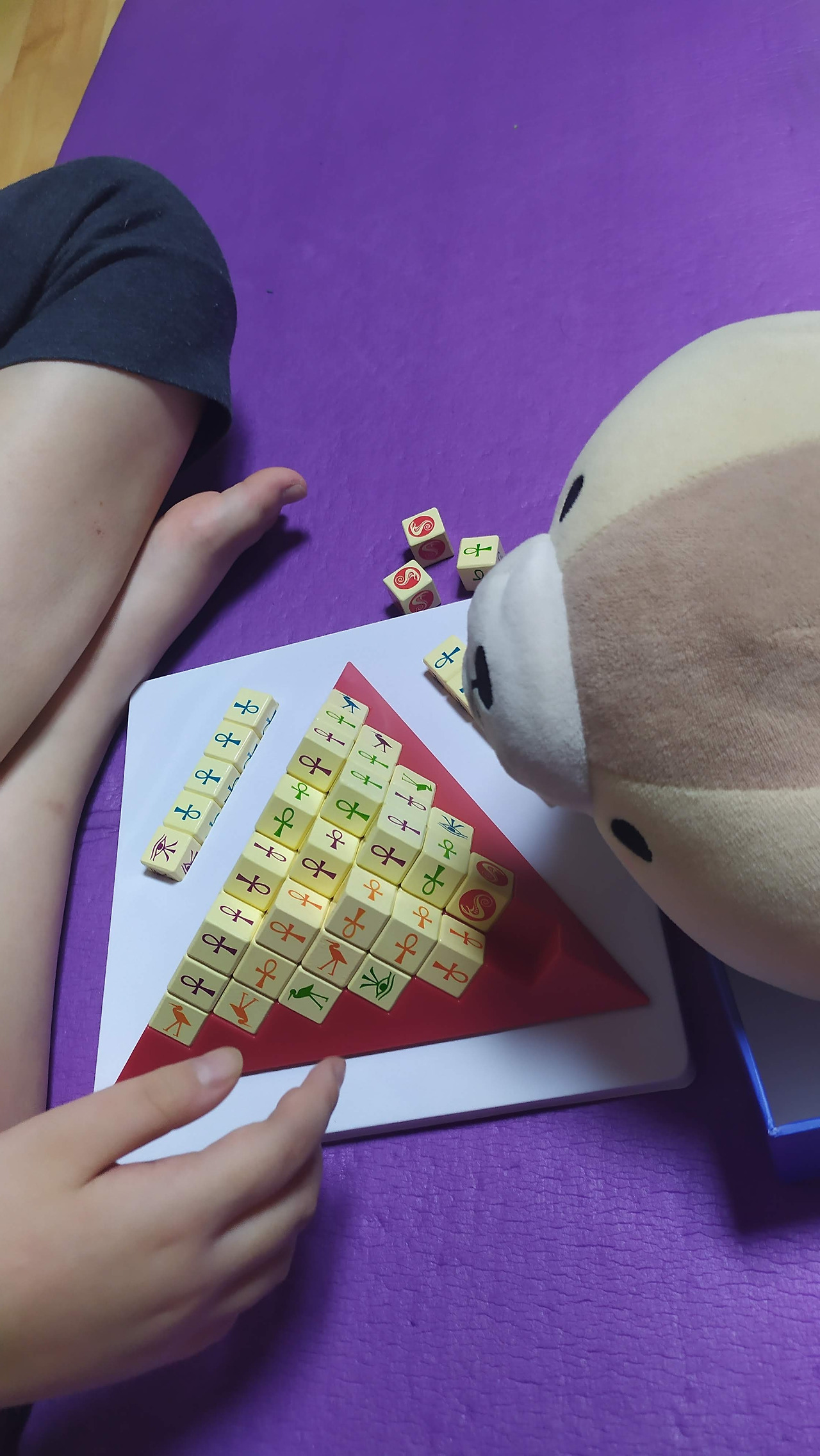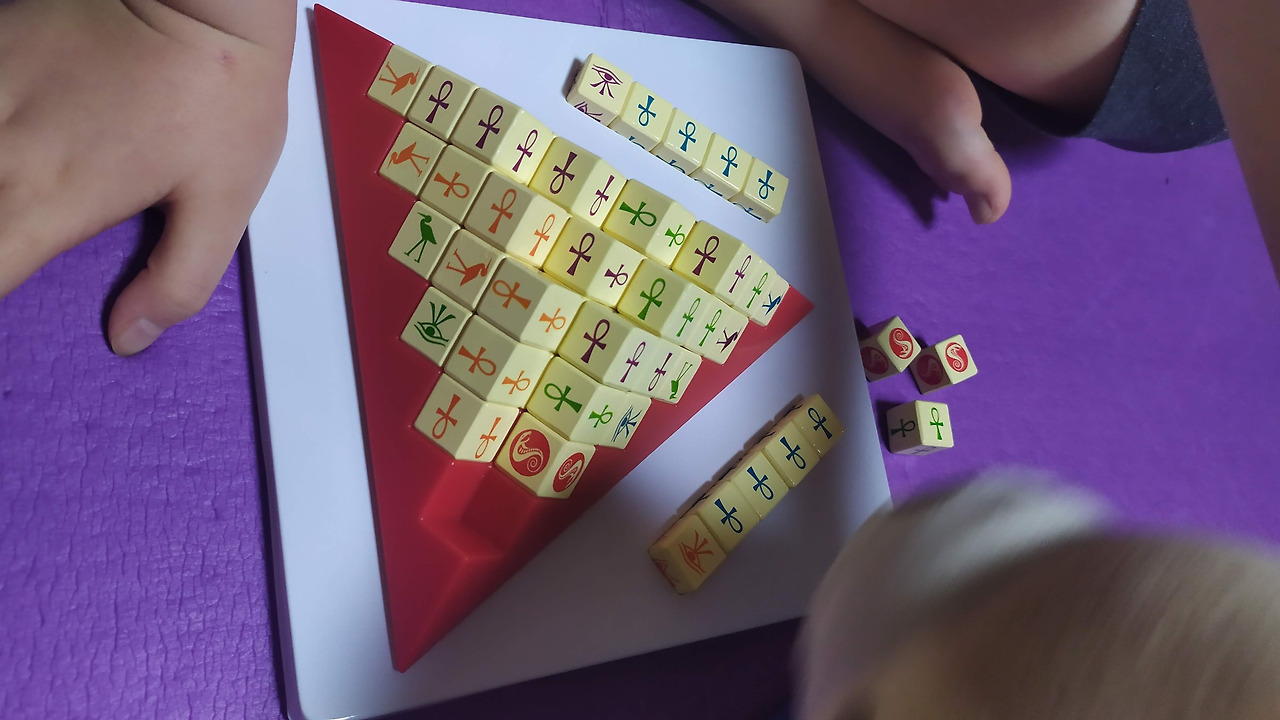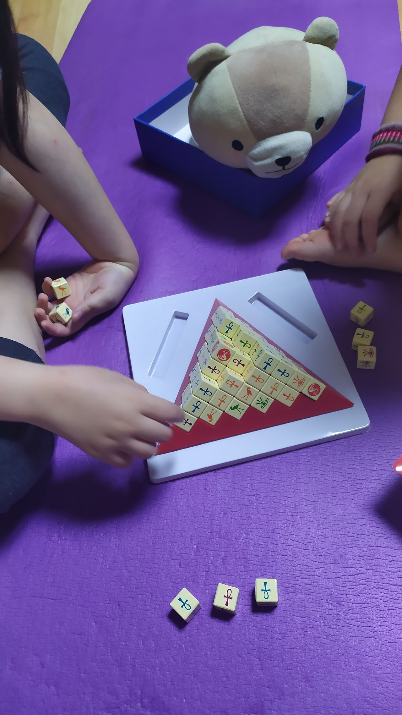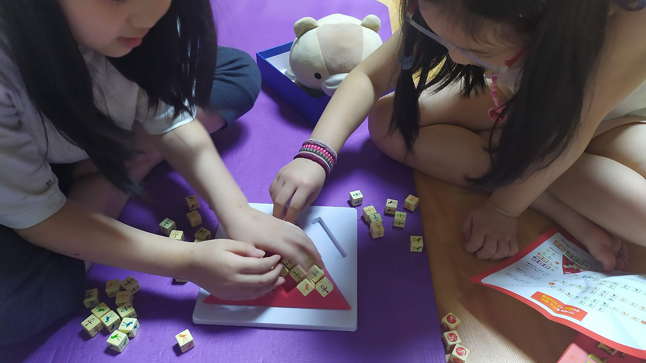 거실의 요가 매트 위에 옹기종기 앉아 피라미드 형태의 보드판을 펼친다.