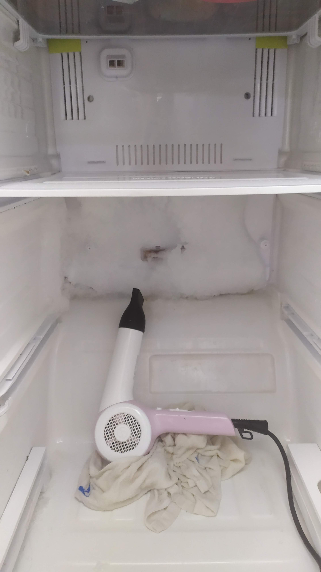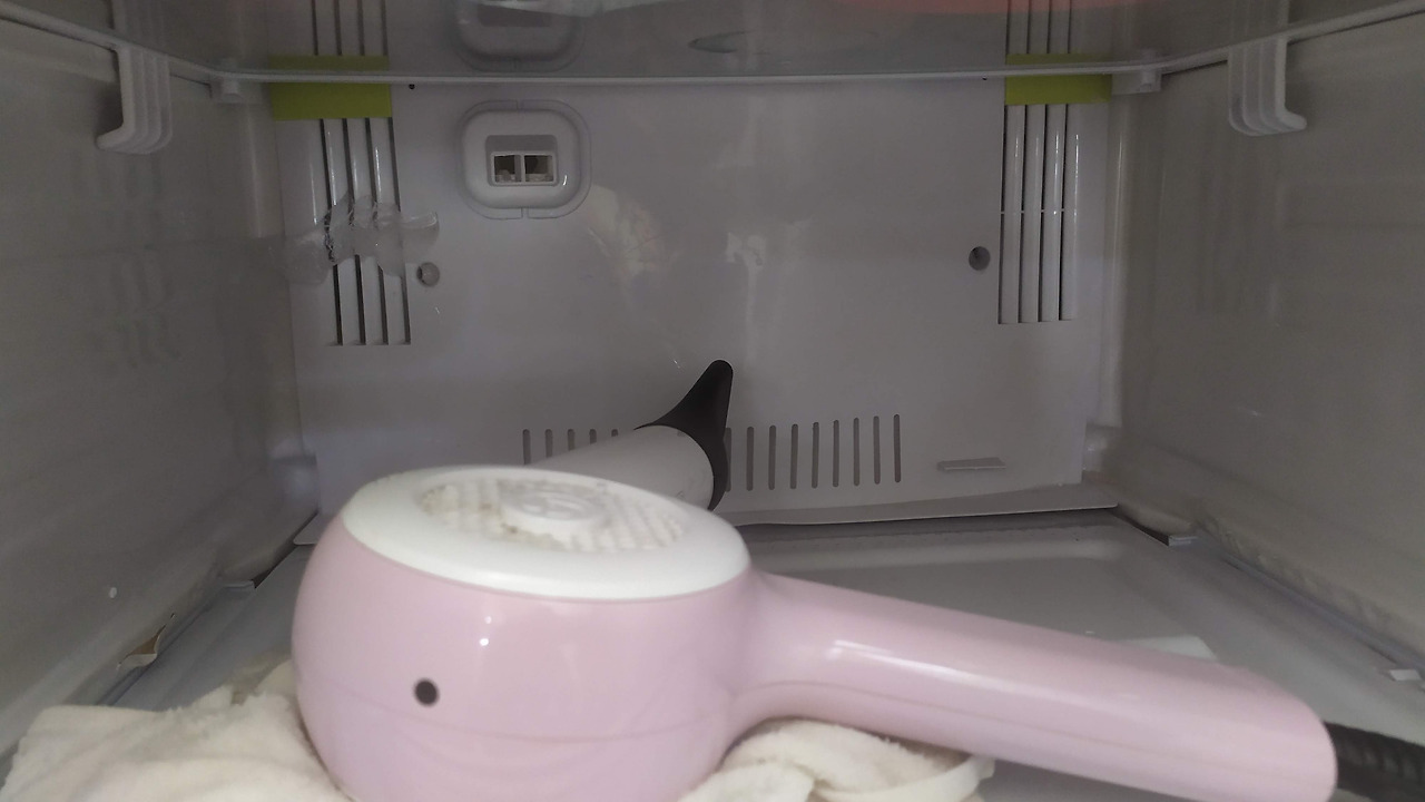 이제 모든 준비는 마쳤다. 한 손에는 드라이어를 들고 뜨끈한 열풍을 냉장고 내부를 뒤덮은 저 거대한 빙벽을 향해 뿜어내면 된다. 두꺼운 얼음이 녹으려면 꽤 오랜 시간이 필요하므로 요령이 필요하다. 마른 수건을 아래에 깔고서 드라이어를 그 위에 거치하면 해동 작업이 수월하겠다.