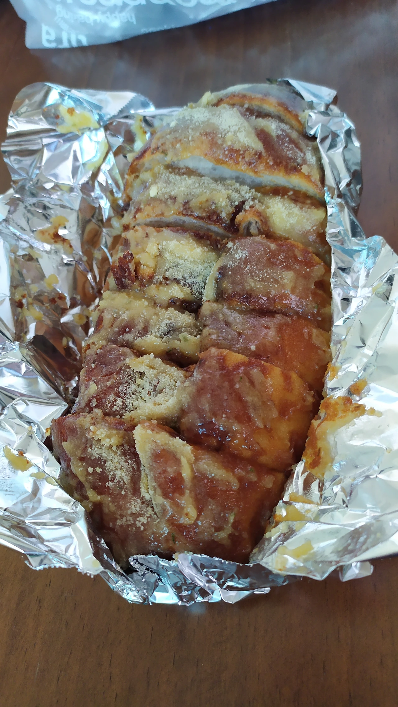 문을 나서는 아내의 손에 온갖 빵들이 한아름 담긴 봉지가 들렸다. 내장산 단풍 공원 주변에 자리 잡은 숙소로 돌아와 마늘빵을 맛본다. 꼼꼼히 감싼 은박 포장을 벗기자 알싸한 마늘 향이 사방에 퍼진다. 충분한 시간을 두고 숙성된 속 반죽은 촉촉하면서도 씹을수록 쫄깃하다. 겉면에끼얹은 진득한 마늘 소스는 두툼한 빵 깊이, 찢어지는 결을 따라 속속들이 스며들었다. 겉모습과는 달리 그 맛은 맵거나 자극적이지 않다. 한입 크게 베어 물면 부드러운 빵의 식감과 절묘하게 어울리는, 짭자름하면서 달달한 마늘 소스의 맛이 일품이다.