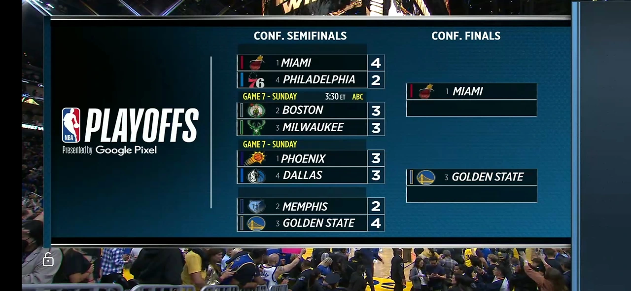 다음 주 월요일 새벽에는 동서부 세미 파이널 7차전이 연이어 벌어진다. 밀워키 대 보스턴 그리고 피닉스 대 달라스. 어느 팀이 최종 승자가 되든 간에 골스는 그들의 혈전을 편히 관전하며 휴식을 취할 수 있다.