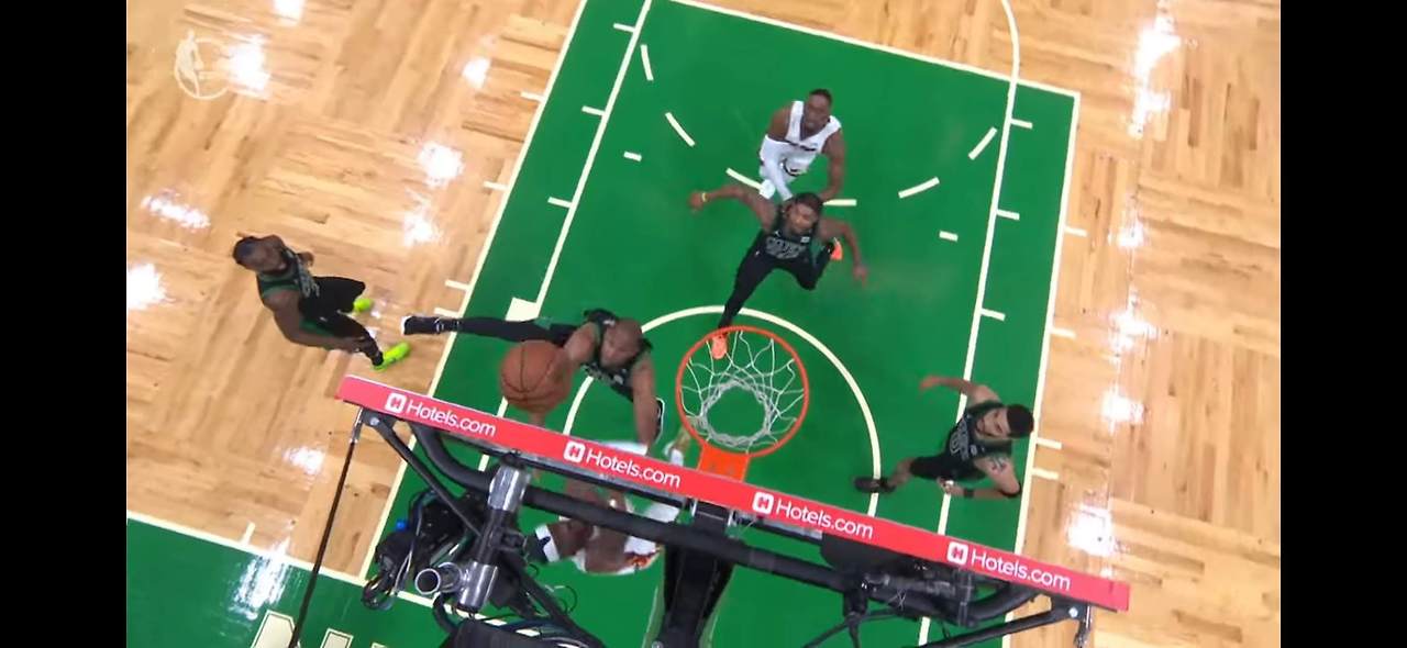 90년대 말, 원숙함이 묻어나고 체공력이 돋보이는 누군가의 페이더웨이 샷을 떠올리는. 활강하는 검은 독수리처럼 하늘에 눕다시피, 모든 이를 낮보며 꽂는 레전드의 고공 점프 샷을 오마주 하는.. 과거 뉴욕의 매디슨 스퀘어 가든, 유타의 비빈트 아레나 등 적지에 모인 팬들의 탄식을 자아내게 하고 좌절케 한 '마이클 조던'의 클러치 플레이의 재현. 마치 그가 TD 가든을 융단 폭격하기 위해 버틀러의 몸을 빌려 다시 코트에 돌아온 것처럼 보였다. 한 마디로 오늘 버틀러의 움직임은 전성기 조던이 재림한 게 아닐까 싶을 정도로 시종일관 경탄을 자아냈다.