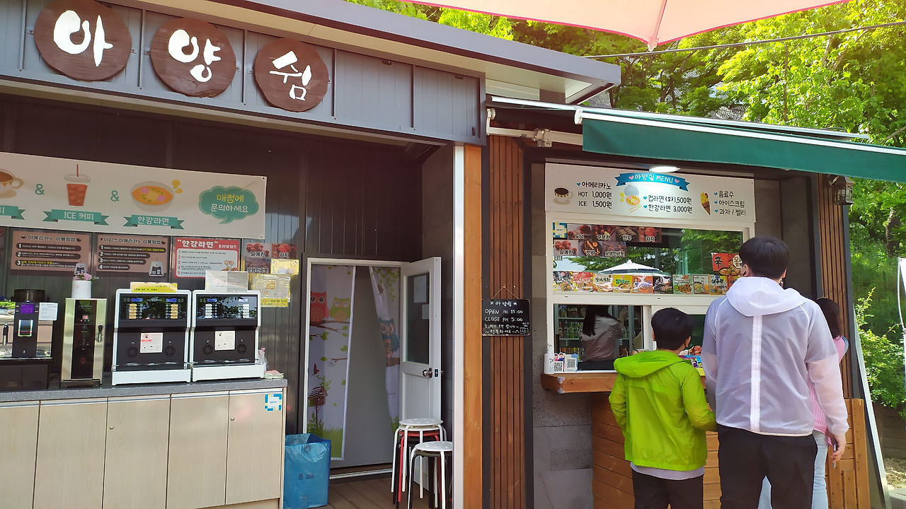 두 시간 아니 세 시간쯤 지났을까? 그제야 아이들이 지쳤는지 다른 데로 가자 한다. 이제 숙소로 돌아가자 한다. 내려가는 길은 킥보드를 타기 수월하다. 꽤나 흥미진진하다. 스릴 넘치게 킥보드를 타고 스키 활강하듯 내려가는 아이들에게 넘어지지 않게 조심해! 하고 소리쳤다. 중간에 '아양쉼'이라는 간이매점이 나타나 잠깐 숨을 돌리기로 한다. 솔과 연은 꽁꽁 얼어붙은 슬러시한 아이스크림을 손으로 조몰락거려 녹이더니 날름 쫍쫍, 해치운다. 냉한 빙수를 쥐여주자 무더위와 열기로 불그레 달아오른 아이들의 얼굴이 겨우 멀게진다.