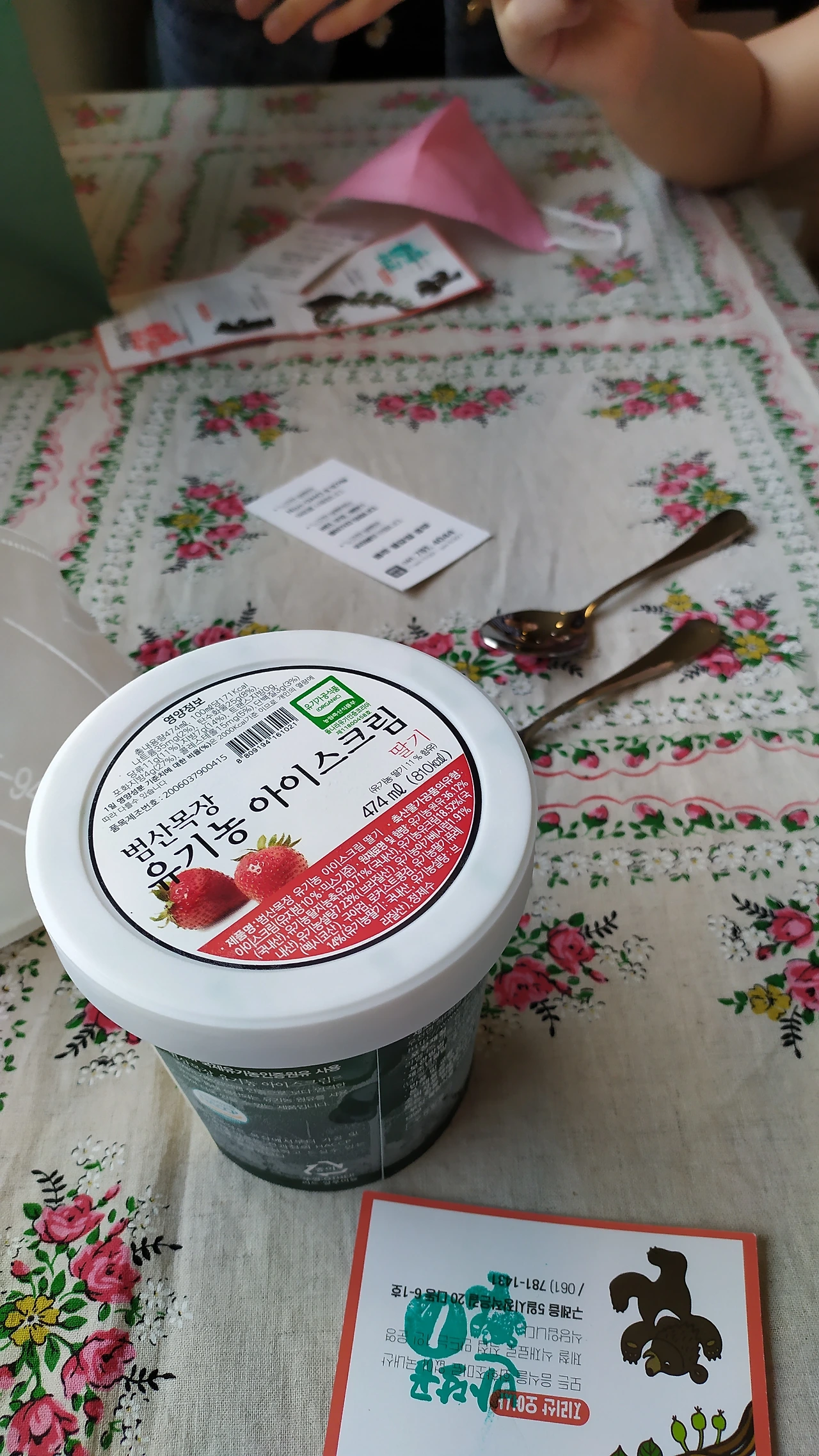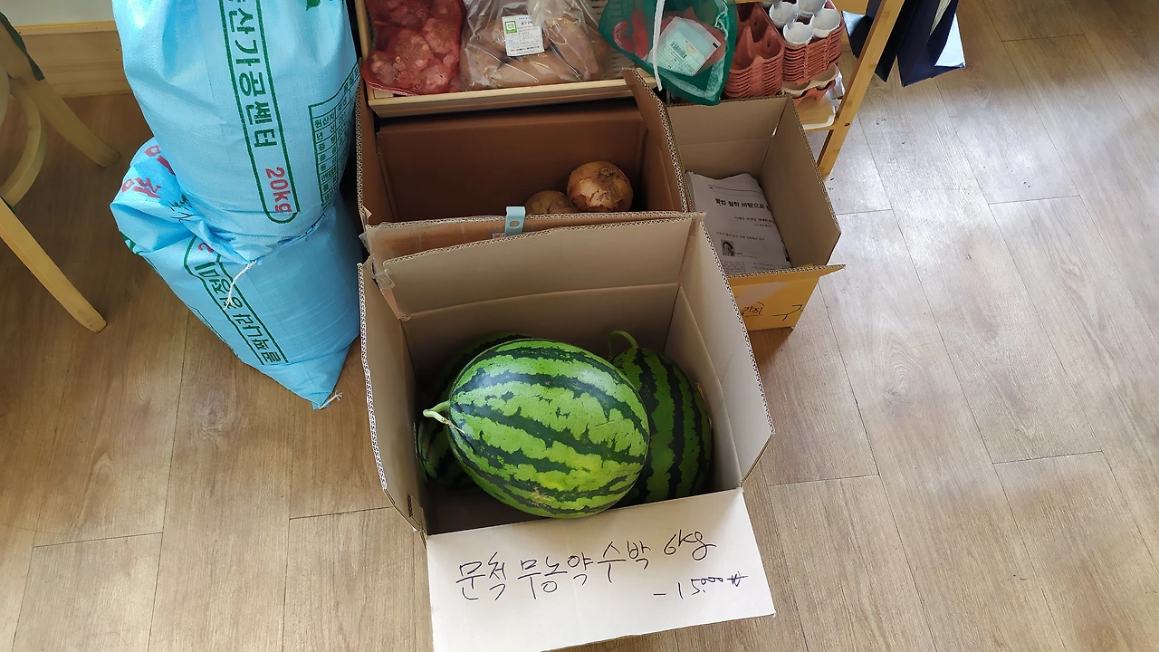 이런 아빠의 속마음을 아는지 모르는지, 솔과 연은 아이스크림을 반찬 삼아 빵을 먹고 있다. 빵 몇 조각을 삼키다가, 입 안에서 사르르 녹는 딸기 아이스크림을 한 스푼 떠먹는 식으로 갈증을 달랜다. 멀리 강원 횡성의 범산목장에서 만든 유기농 아이스크림이란다. 빵집 내부에 진열된 매대에는 유기농 감자칩과 웨하스 등의 스낵류가 빈틈없이 놓여 있다. 테이블 옆 박스에는 문척에서 재배한 무농약 수박이며 햇양파가 그득하다.