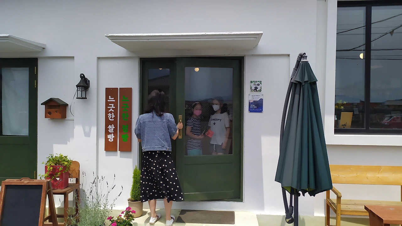 <느긋한 쌀빵>, 녹두빛으로 칠한 여닫이 문에 다가서면 눈에 띄는 이름이다. 옆에는 '느긋한 점빵'이라 적힌 간판이 나란히 걸려 있다. 바쁜 하루에 점을 그리듯이, 느긋한 마음으로 자기네 빵을 맛보라는 의미인가.