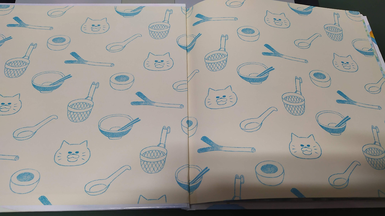 책을 빌리기 전에 아빠가 먼저 읽어보기로 한다. 사전 검열까지는 아니고, 이번엔 야옹이 무리들이 어떤 사고를 칠지 나 또한 궁금했기 때문이다. 얼마 전 읽었던 전작은 야옹이들이 빵공장에 무단 침입하여 어마 무시한 특대 사이즈 빵을 굽다가 포복절도할 대형 사고를 친다는 내용이었다. 박살이 난 식빵 모양의 공장 앞에서 노란 야옹이들이 일렬로 서서 벌을 받는 모습이 얼마나 개구지던지.. 제목이 <빵 공장이 들썩들썩> 이던가 그랬다.