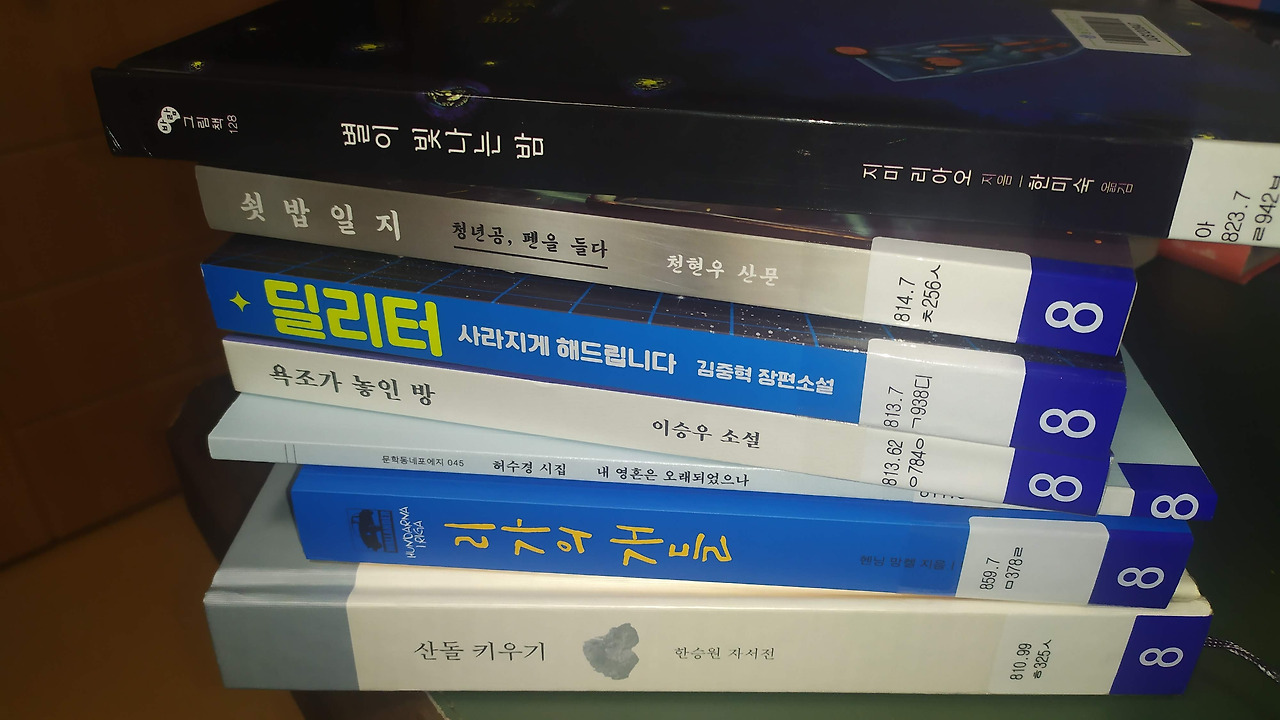 묵직한 책 더미를 가득 실은 차 트렁크는 살짝 주저앉은 것처럼 보인다. 뒷타이어의 접지면은 무게에 눌려 평소보다 납작해 보인다. 매달 서울 시내 주요 도서관을 순회하며 새로 눈에 띄는, 따끈한 신간과 기대작을 받아오는 날은 한바탕 축제와 같은 날이다. 아무것도 먹고 마시지 않아도 배부른 날이고, 힙한 음악과 춤이 없어도 흥겨운 날이다. 집에 도착하면 도서관마다 칸을 구분하여 책장에 정리할 것이다. 비록 왜소한 판형에 두께는 얇지만 무궁무진한 은유와 심오한 사유를 응축한 시집은 앞표지가 보이도록, 가장 넓은 공간을 차지하도록 배치하리라.