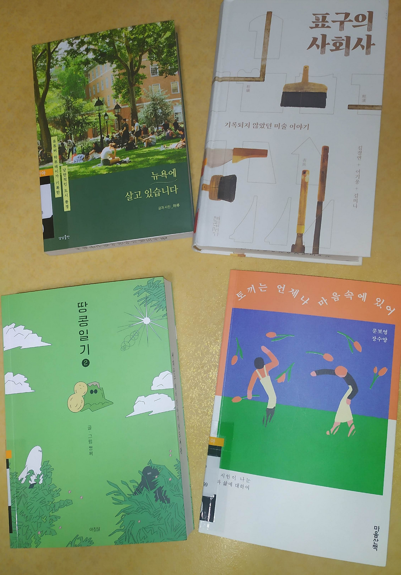 한 달 전에 희망 도서로 신청한 트렌디한 여행 서적 다수와 일러스트레이터 쩡찌의 <땅콩일기 2>, 기록되지 않은 표구사를 다룬 <표구의 사회사> 그리고 두 젊은 시인의 솔직 담백한 대화를 적은 <토끼는 언제나 마음속에 있어> 등을 받아 들고는 집으로 향했다.