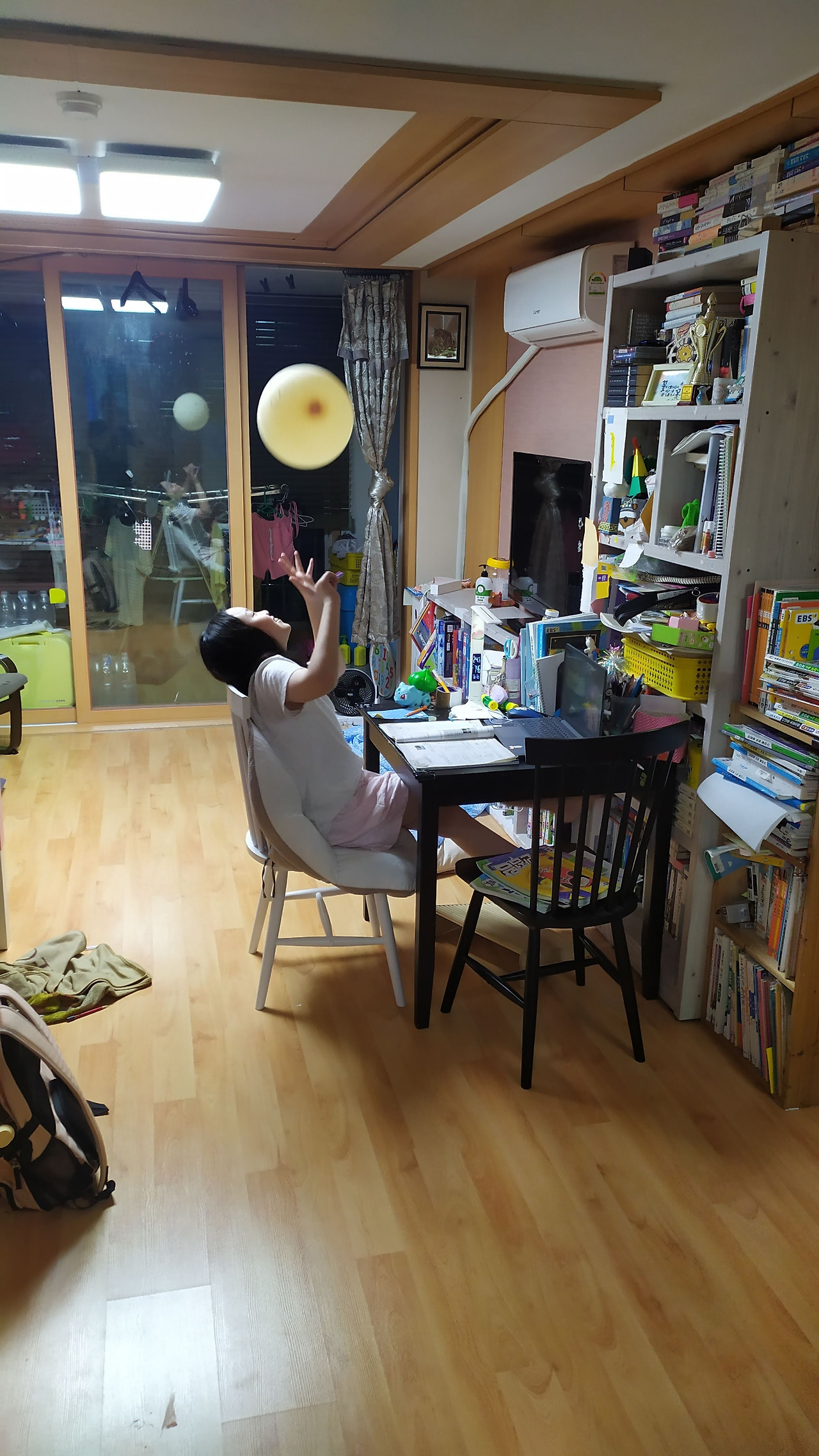 안에서 풍선을 날리고 서로 주고받는 놀이를 하는지 깔깔, 큭큭 떠들고 웃는 소리가 들린다. 솔이 짓궂은 장난을 쳤는지, 언니이~ 하고 연이 목소리를 높인다. 난 방문을 살짝 열고 고개를 들이밀었다.
