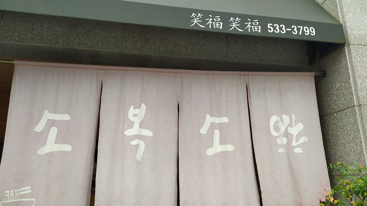 <소복소복笑福笑福>, 가게 입구의 그늘막과 노렌 のれん에 새겨진 이름을 보고 참 잘 지었다 생각했다. 누가 작명했는지 모르겠지만 고심 끝에 얻어진 이름이리라. 하루아침에 뚝딱, 지은 상호는 아니리라 짐작했다.