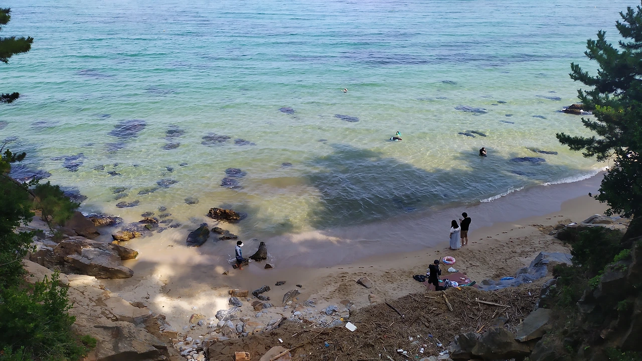 - 그렇긴 한데.. 여기가 시원한 대신에 바다 들어가면 바닥이 비죽비죽해서 발바닥이 따갑고 아프더라고.