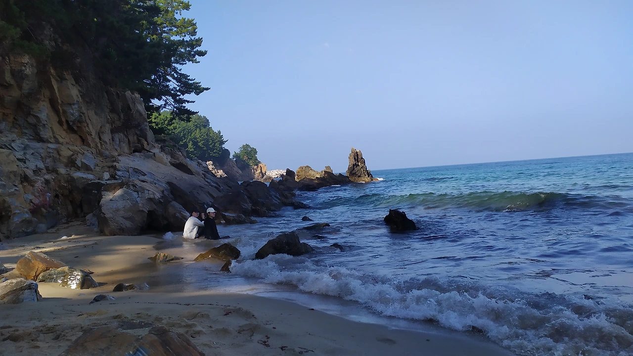 동해시에 도착한 첫날부터 줄기차게 내리던 비는 다음날 오전에야 겨우 그쳤다. 숙소의 창 밖으로 자취를 감추었던 햇살이 비치자 난 차 키를 집어 들었다. 이제 가볼까, 어디로? 당연히 바다지, 어디겠어? 들뜬 표정의 아이들은 물안경과 바람 빠진 튜브를 주섬주섬 챙겨서 내 뒤를 따랐다. 목적지는 한섬 해변. 동해시에서 이름난 해수욕장이란다.