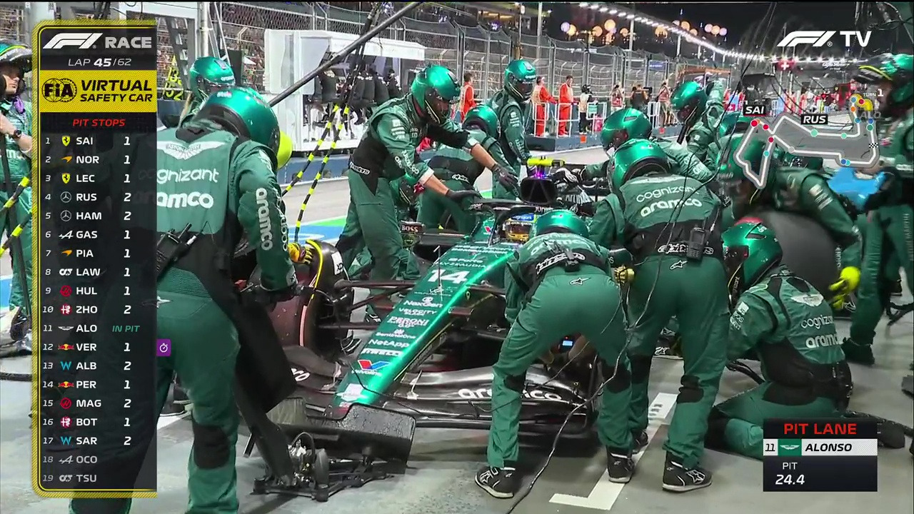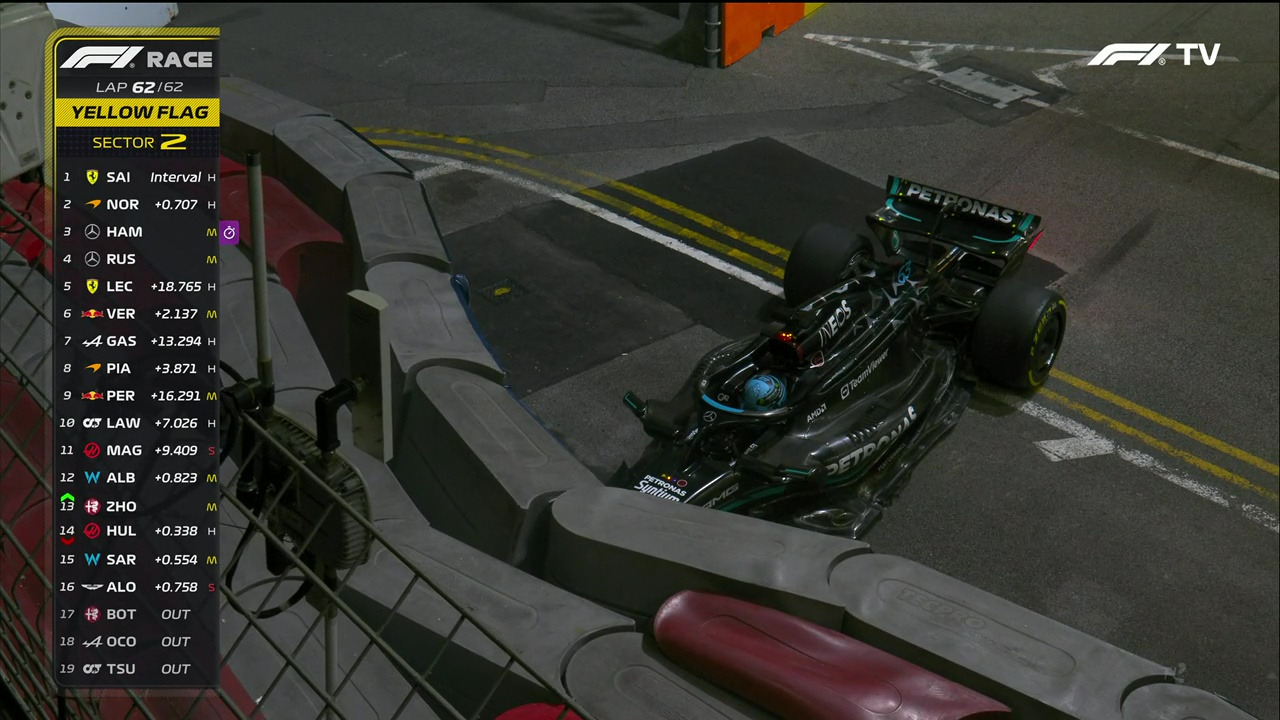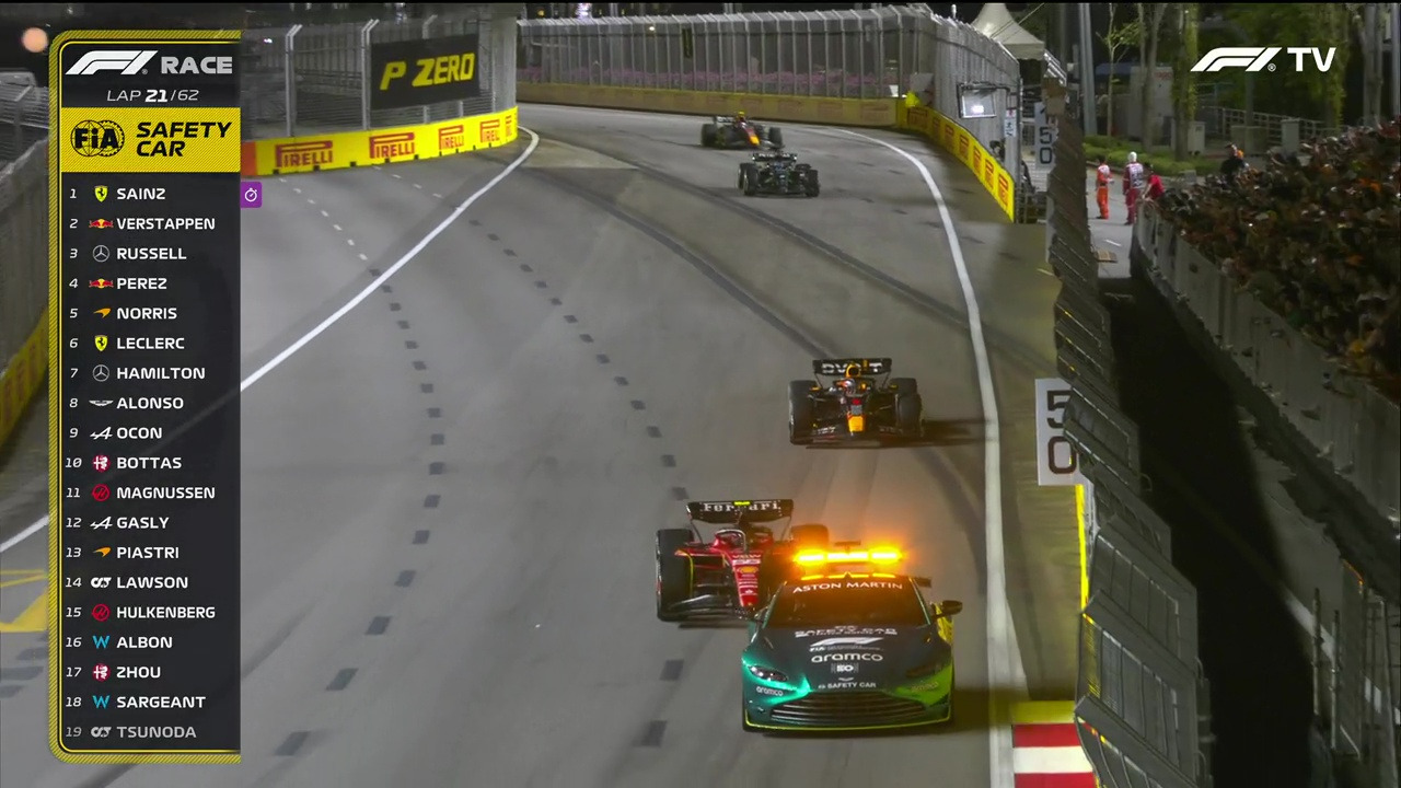 24 랩에서는 3위까지 치고 올라와 포디엄을 넘본다. 도로 폭이 좁고 코너 기울기가 수직에 가깝게 급격한 시가지 트랙의 난이도와 극심한 견제를 가하는 타 팀의 드라이버들을 감안한다면 기적과 같은 퍼포먼스가 아닐 수 없다. 그는 중후반 레이스에서 상위 포지션을 노렸지만 운이 따르지를 않았다. 18 랩 윌리엄즈 팀, 로건 서전트의 충돌 사고와 40 랩 시작 코너에서 알핀 팀의 에스테반 오콘이 차량 문제로 스톱했다. 곧바로 황색기(Yellow Flag)가 휘날리고 세이프티 카(SC)가 출동한다. SC가 서킷에 나서고, 사고 차량의 잔해를 치우는 동안 각 F1 머신들은 속도를 낮춰 지그재그 주행을 해야 한다. 트랙에 타이어 소음과 흩날리는 불꽃이 사라지고, 공격적인 추월이 허용되지 않는다.